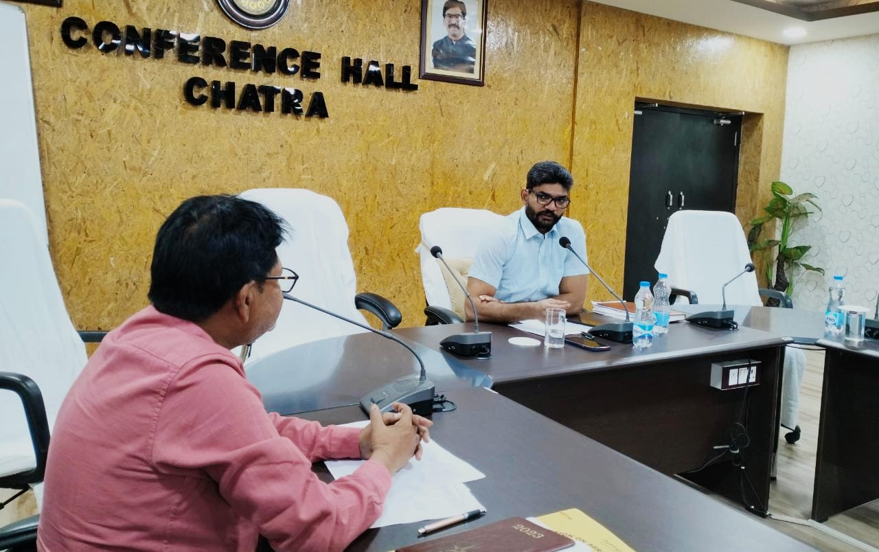 Chatra : समाहरणालय स्थित सभा कक्ष में उपायुक्त श्री अबु इमरान की अध्यक्षता में कृषि, गव्य विकास, पशुपालन, भूमि-संरक्षण, मत्स्य विभाग, सहकारिता, सांख्यिकी विभाग समेत अन्य विभागों की समीक्षा बैठक की गई। जिला कृषि पदाधिकारी, चतरा द्वारा बताया गया कि किसान क्रेडिट कार्ड योजना के तहत जिले में कुल 112101 आवेदन बैंकों के द्वारा स्वीकृत किये गये हैं, जो राज्य में चतरा जिला का दूसरा स्थान है। झारखण्ड कृषि ऋण माफी योजना के तहत् बताया गया कि कुल 21496 ई-KYC की स्वीकृति दी गई है जिसपर उपायुक्त ने विगत बैठक में उक्त योजना अंतर्गत लाभुकों के सत्यापन के निर्देश की अघतन स्तिथि की जानकारी ली गई। इसी क्रम में DMFT के अंतर्गत किये जा रहे विभिन्न कार्यक्रम यथा बीज वितरण, मिनी किट वितरण एवं मिशन लाइफ और गोबर धन योजना अंतर्गत किये गए गोष्ठी, जिला स्तरीय प्रशिक्षण एवं अन्य किये जा रहे कार्यों की जानकारी लेते हुए उपायुक्त ने जरूरी दिशा निर्देश दिया।