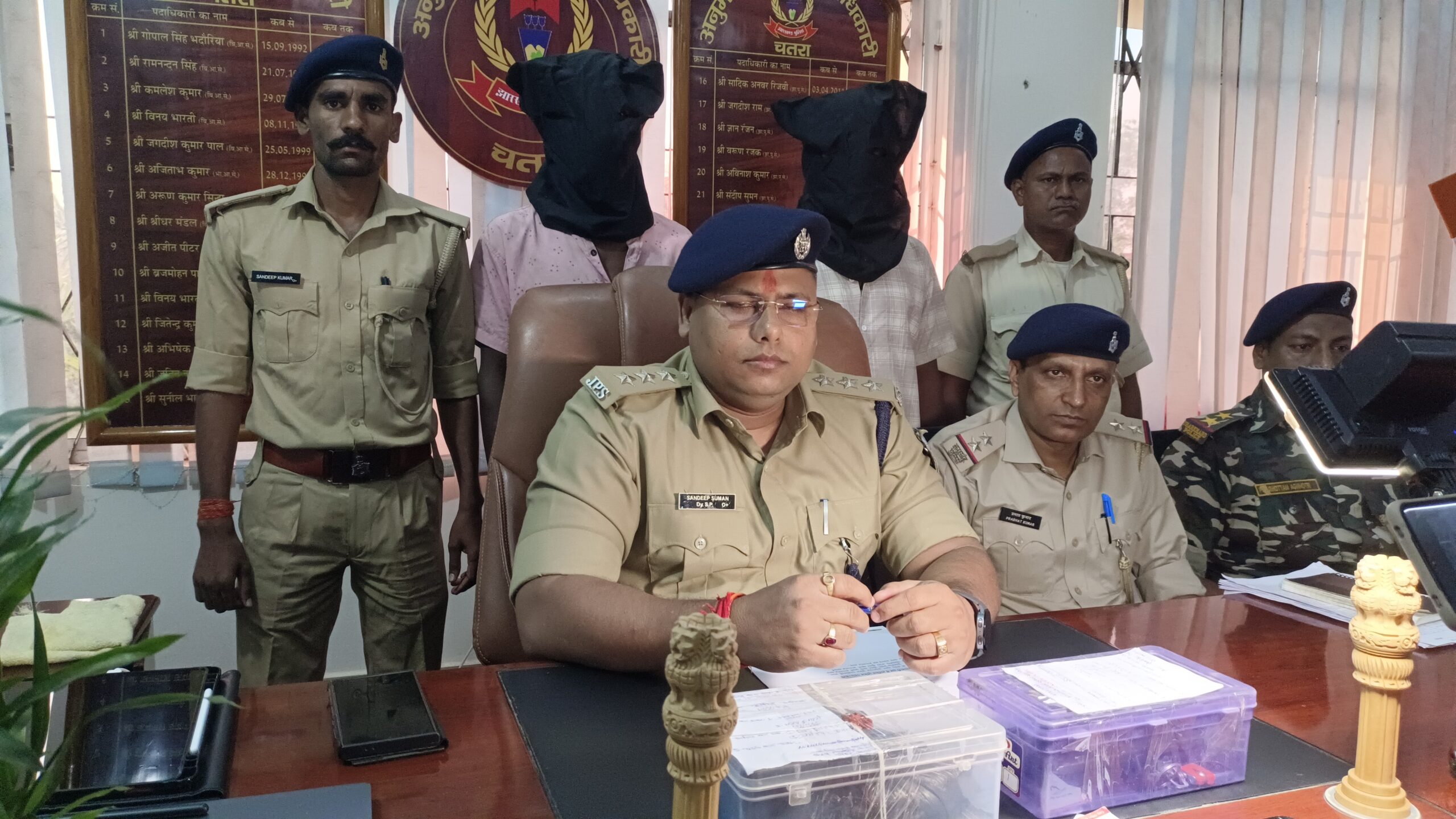 चतरा। चतरा पुलिस मादक पदार्थों पर नकेल कसने के लिए लगातार कार्रवाई कर रही है। बीते बुधवार को हंटरगंज पुलिस ने एक बड़ी कार्रवाई में बिहार में तस्करी के लिए जा रही 01 किलो 90 ग्राम अफीम के साथ दो तस्करों को गिरफ्तार कर लिया। बरामद अफीम की कीमत लगभग 5 लाख रु है। आज अपने कार्यालय कक्ष में प्रेस वार्ता को संबोधित करते हुए चतरा एसडीपीओ संदीप सुमन ने बताया कि पुलिस अधीक्षक सुमित कुमार अग्रवाल को गुप्त सूचना मिली थी कि लावालौंग थाना क्षेत्र से दो तस्कर होंडा साइन मोटरसाइकिल रजि नं-जेएच 13 के-3724 से अफीम की खेप लेकर बिहार की ओर जाने वाले हैं। सूचना के आधार पर उनके नेतृत्व में हंटरगंज थाना प्रभारी प्रभात कुमार के साथ एक छापामारी दल का गठन किया गया। छापामारी दल ने त्वरित कार्रवाई करते हुए थाना क्षेत्र के गोसाईडीह के पास से मोटरसाइकिल सवार को रोका और तलाशी ली।तलाशी के क्रम में मोटरसाइकिल की डिक्की से 01 किलो 90 ग्राम अफीम बरामद किया गया। तस्करों के पास से दो एंड्रॉयड फोन भी बरामद किया गया है। गिरफ्तार तस्करों में लावालौंग थाना क्षेत्र के जिरौन गांव के सुरेश गंझू के पुत्र प्रमेश्वर कुमार (20 वर्ष) तथा राजकुमार गंझू (24 वर्ष) का नाम शामिल है।इस संबंध में हंटरगंज थाना काण्ड सं0-178/25 दिनांक-15.10.2025 धारा-18 (बी)/27 (ए)/28/29 एन०डी०पी०एस० एक्ट दर्ज किया गया है।छापामारी दल में