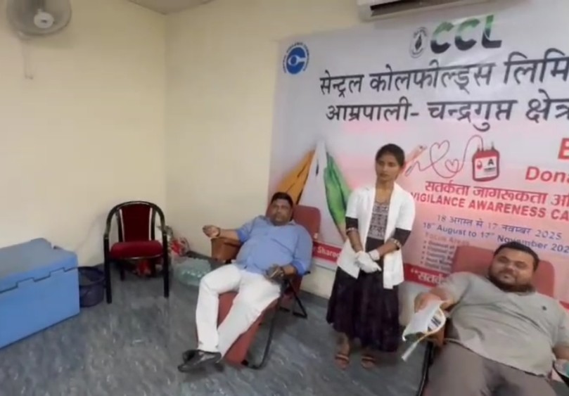 चतरा : आम्रपाली में बुधवार को महालक्ष्मी इंफ्रा कॉन्ट्रेक्ट लिमिटेड के सौजन्य से तथा कंपनी प्रबन्धक के पुत्र की पुण्यतिथि के अवसर पर रक्तदान शिविर का आयोजन किया गया। यह कार्यक्रम रेड क्रॉस सोसाइटी चतरा के तत्वावधान में तथा सतर्कता जागरूकता अभियान के तहत संपन्न हुआ। रक्तदान शिविर का शुभारंभ सीसीएल महालक्ष्मी के प्रबंधक सुरेश पटेल तथा जीएम ऑपरेशन सीसीएल ए.के. बी. सिंह ने संयुक्त रूप से फीता काटकर किया। इस अवसर पर सीएसआर हेड मोहसिन , महालक्ष्मी इंफ्रा के अधिकारी एम.के. राव, रंजीत सिन्हा, सोनू सिंह, केतन पटेल , रेड क्रॉस के सचिव धर्मेंद्र पाठक, वाइस चेयरमैन विवेक केशरी, एमपीडब्ल्यू रत्नेश कुमार, मो तस्लीम, निर्भय कुमार, मधुलता कुमारी, सुप्रिया कुमारी, सुमन कुमारी, जयंती कुमारी, विजय कुमार सहित कई गणमान्य लोग उपस्थित थे। शिविर में कुल 68 रक्तवीरों ने स्वेच्छा से रक्तदान किया। कार्यक्रम में शामिल अधिकारियों ने रक्तदाताओं का उत्साहवर्धन किया और उनके इस पुनीत कार्य की सराहना की। जीएम ए.के. बी. सिंह ने अपने संबोधन में कहा कि “रक्तदान महादान है। एक यूनिट रक्त किसी जरूरतमंद की जिंदगी बचा सकता है। इसीलिए हर स्वस्थ व्यक्ति को समाज के हित में नियमित रूप से रक्तदान करना चाहिए।”वहीं रेड क्रॉस सोसाइटी के पदाधिकारियों ने भी रक्तदाताओं को धन्यवाद देते हुए कहा कि ऐसे आयोजन समाज को सच्ची मानवीय सेवा की दिशा में प्रेरित करते हैं।