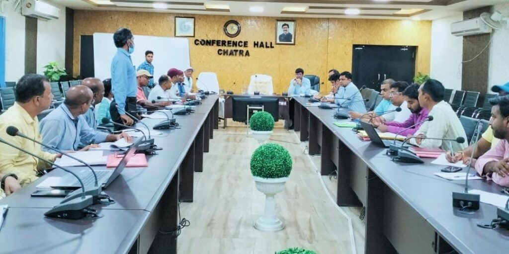 चतरा समाहरणालय स्थित सभा कक्ष में उपायुक्त चतरा श्री अबु इमरान के निर्देशानुसार उप विकास आयुक्त श्री उत्कर्ष गुप्ता की अध्यक्षता में जिला स्वास्थ्य समिति तथा स्वास्थ्य विभाग द्वारा क्रियान्वित सभी कल्याणकारी योजनाओं एवं कोविड से संबंधित समीक्षात्मक बैठक की गई।बैठक में मुख्य रूप से कोविड जांच, गर्भवती महिलाओं का एएनसी जाचं, संस्थागत प्रसव, सिजेरियन, आयरन, कैल्श्यिम, फोलिक एसिड, हीमोग्लोबिन जांच, एचआईवी जांच, कुपोषण उपचार केन्द्र, एसएनसीयू, नियमित टीकाकरण, कुष्ठ रोग, टीवी रोग, मलेरिया, एनसीडी, फाईलेरिया दवा की उपलब्धता, स्वास्थ्य संस्थान की आधारभुत संरचना, मानव संसाधन की उपलब्धता आदि के संदर्भ में समीक्षा की गई।समीक्षा के क्रम में उप विकास आयुक्त ने जिले के सभी समुदायिक स्वास्थ्य केंद्र में चल रहे कोविड जांच को लेकर निर्देशित किया कि यह सुनिश्चित करें कि सभी समुदायिक स्वास्थ्य केंद्र में नियमित कोविड जांच हो। जिले में सर्वे कराकर सभी गर्भवती महिलाओं एवं शिशुओं का नियमित टीकाकरण लक्ष्य के विरुद्ध शत प्रतिशत उपलब्धि प्राप्त करने हेतु कई आवश्यक दिशा निर्देश दिए। उन्होंने सभी प्रभारी चिकत्सा पदाधिकारी को निर्देशित किया कि एक माह के अंदर सभी क्रियान्वित योजनाओं का शत प्रतिशत लक्ष्य पूर्ण करें। भी.बी.डी. कंसल्टेंट के द्वारा जानकारी दी गई कि आई. डी.ए. फाइलेरिया विलोपन कार्यक्रम 2023 10 अगस्त से 28 अगस्त 2023 तक चतरा जिले में चलाया गया। जिसमें कूल जनसंख्या का 85% लक्षित जनसंख्या का 96.5% लोगों को दवा का सेवन कराया गया है। जिसमे प्रतिकूल प्रभाव 231 लोगों में देखा गया , एवं माह अगस्त में 4590 घरों में डेंगू सर्विलेंस किया गया जिसमे 14 घरों में डेंगू का लार्वा पाया गया जिसे लार्वा नाशक छिरकाऊ के द्वारा नष्ट कर दिया गया है। बैठक में मुख्य रूप से सिविल सर्जन, डॉ. जगदीश प्रसाद, सभी प्रभारी चिकित्सा पदाधिकारी, सभी प्रखंड कार्यक्रम प्रबंधन इकाई, जिला कार्यक्रम प्रबंधन इकाई एवं स्वास्थ्य कर्मी उपस्थित थे