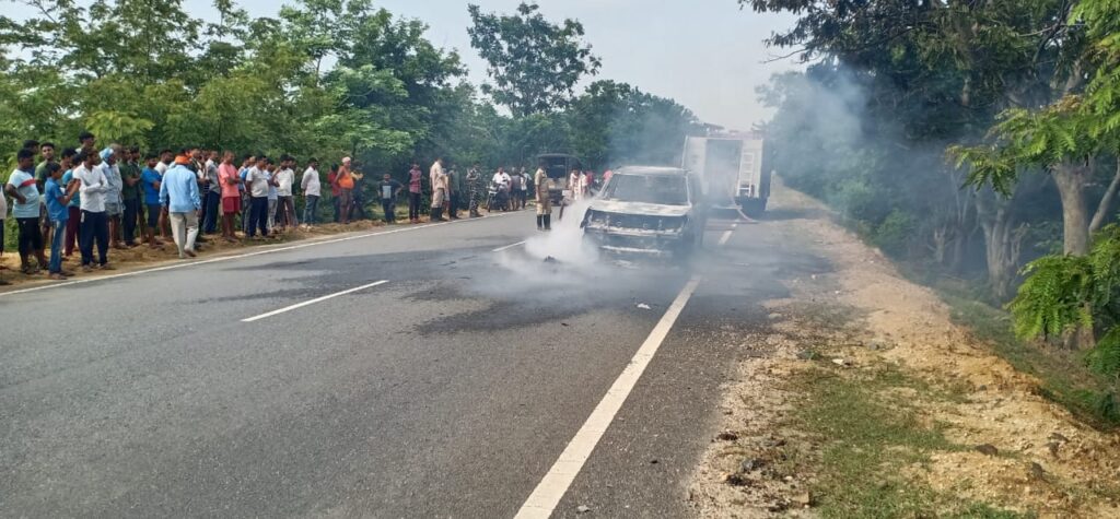 गिद्धौर /चतरा : चौपारण चतरा मुख्य पथ पर गिद्धौर थाना क्षेत्र के बेलगाछ के समीप रविवार को न्यू बोलेरो वाहन जिसका नम्बर JH02BM- 4247 में अचानक आग लग गई।जिससे बोलेरो बुरी तरह से जल कर राख हो गया ।हलाकि वाहन मालिक खुद ही गाड़ी चला रहा था।वे भी झुलस गए। जिसे इलाज के लिए हजारीबाग ले जाया गया । मालूम हो कि चौपारण थाना क्षेत्र के चैथी गांव निवासी नुनु प्रसाद के पुत्र सुबास दांगी अपने घर चैथी से चतरा जारहा था।इसी क्रम में बेलगाछ के समीप वाहन में अचानक आग लग गया , और वाहन के सभी गेट लोक हो गया ,पथ से गुजर रहे राहगीरों ने शीशा तोड़ कर वाहन चालक को निकाल गया । हलाकि वाहन मालिक का हाथ व चेहरा आग में झुलस गया । सूचना मिलते ही घटना स्थल पर पुलिस अवर्निरीक्षक विजय गुप्ता पहुचे ,साथ ही आग बुझाने के लिए दमकल पहुँचा ,परन्तु तब तक वाहन पूरी तरह से जल कर राख हो गया । मालूम हो कि वाहन 15 दिन पूर्व ही शोरूम से खरीदा गया था ।