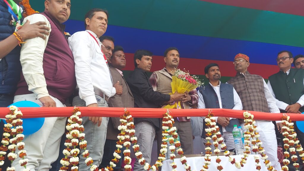 प्रतापपुर/चतरा :-रविवार को प्रतापपुर हाई स्कूल के खेल मैदान से आजसू ने पंचायत सह प्रतिनिधि महासम्मेलन का आगाज किया।वही चतरा विधानसभा प्रभारी सह केंद्रीय महासचिव अशोक गहलौत ने पूर्व उपमुख्यमंत्री सुदेश महतो को माला पहनाकर व बुके देकर स्वागत किया। वही आजसू सुप्रीमो ने सर्वप्रथम तिलका मांझी के चित्र पुष्प अर्पित व दीप प्रज्वलित कर कार्यक्रम की शुरुआत की गई आजसू सुप्रीमो सह पूर्व उपमुख्यमंत्री ने महागठबंधन सरकार को आड़े हाथों लिया और जमकर निशाना साधा।वही कई मुद्दों पर सरकार व स्थानीय मंत्री को घेरा वही शिक्षा,स्वास्थ्य,रोजगार के मुद्दे पर वर्तमान सरकार को घेरा,आजसू सुप्रीमो ने कहा की आज की वर्तमान स्थिति में सरकार का कोई भी पदाधिकारी बिना पैसे का कोई भी कार्य नहीं हो रहा है।वहीं चतरा के लोगों से विकास की नई गाथा लिखने की बात कही है।वही उन्होंने कहा की चतरा का ऋणी हूँ।और चतरा को विकास की नई अध्याय की शुरुआत करेंगे।वही जोरी को प्रस्तावित प्रखंड को प्रखण्ड दर्जा देने व पांडेयपुरा को प्रखंड बनाने को लेकर आवेदन दिया गया।मौके पर केंद्रीय प्रवक्ता देवशरण भगत,केंद्रीय सचिव पारसनाथ सिंह,सिद्धार्थ सिंह,जिला अध्यक्ष शिवलाल दांगी,महासचिव उमेश सिंह भोक्ता,केंद्रीय सदस्य संतोष कुमार यादव,जिला उपाध्यक्ष रंजीत सौंडिक,प्रखण्ड अध्यक्ष खुर्शीद खान,अजित यादव सुबोध दांगी,उमेश दास,अरबिंद यादव,पिंटू चौधरी,अरबिंद गुप्ता,उत्तम ठाकुर, अनुराग प्रजापति,श्रवण यादव,कन्हाई साव समेत जिला व प्रखण्ड कमिटी के कार्यकर्ता मौजूद थे।