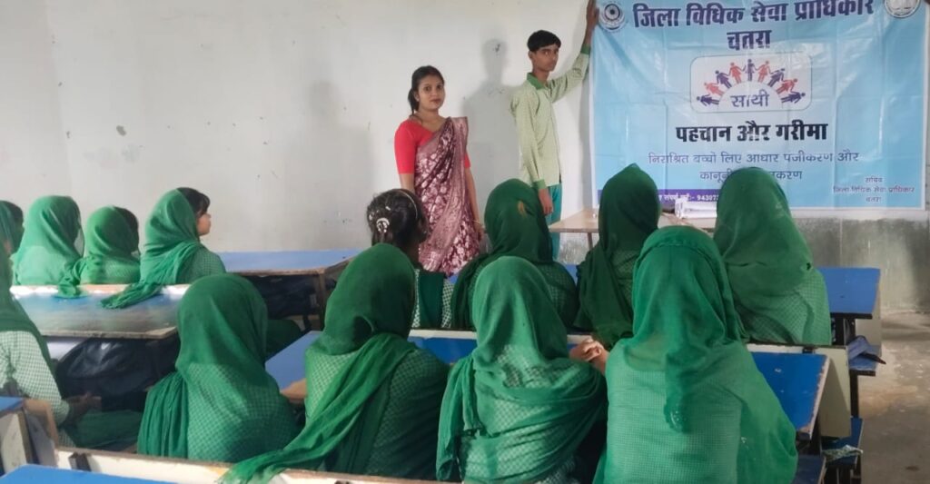 कान्हाचट्टी/चतरा : शुक्रवार को साथी योजना के अंतर्गत प्रखण्ड कान्हाचट्टी उत्क्रमित मध्य विद्यालय खीरगड़ा में प्रखण्ड पीएलवी निशा कुमारी के द्वारा विधिक जागरूकता शिविर का आयोजन किया गया। बच्चों को नालसा बालकों के लिए विधिक सेवाएं योजना 2015 एवं निराश्रित बच्चों को मिलने वाली सुविधाओं के बारे में जानकारी दी गई। साथ ही 0 से 18 वर्ष के आयु के बच्चे जिनका आधार कार्ड नहीं बना है उन्हें आधार कार्ड बनवाने के लिए प्रेरित किया गया।