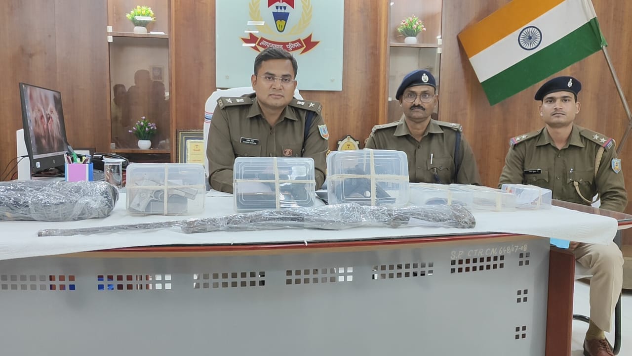 चतरा : कोयलांचल में आतंक का पर्याय बन चुके प्रतिबंधित टीएसपीसी नक्सलियों को पुलिस ने एक बार फिर बड़ा झटका दिया है। विकास योजनाओं में लेवी और रंगदारी की मांग को लेकर आगजनी व मारपीट की घटना को अंजाम देकर कंपनियों और संवेदकों से रंगदारी और लेवी की मांग के फिराक में जुटे टीएसपीसी सबजोनल कमांडर आदेश कुमार गंझु उर्फ प्रभाकर समेत पांच नक्सलियों को सुरक्षाबलों ने धर दबोचा है। साथ ही गिरफ्तार नक्सलियों के पास से 0.315 बोर का एक राइफल, दो देशी पिस्टल, पांच चक्र जिंदा गोली, 9 एमएम का तीन चक्र जिंदा गोली, एक एयर पिस्टल, विभिन्न कंपनियों का 6 मोबाइल फोन, दो धारदार चाकू, 18 पीस नक्सली पर्चा, पर्चा लिखने में प्रयुक्त मार्कर व नक्सलियों का चितकबरा बैग बरामद किया है। गिरफ्तार नक्सलियों का पुलिस को आधा दर्जन मामलों में लंबे समय से तलाश थी। एसपी राकेश रंजन ने बताया कि गुप्त सूचना मिली थी कि सबजोनल कमांडर के नेतृत्व में संगठन का हथियारबंद दस्ता इलाके में किसी बड़ी घटना को अंजाम देने के फिराक में है। सूचना के आधार पर टंडवा थाना प्रभारी विजय सिंह के नेतृत्व में स्पेशल टीम का गठन कर कार्रवाई का निर्देश दिया गया था। टीम ने प्रोफेशनल तरीके से कार्रवाई करते हुए थाना क्षेत्र के विभिन्न इलाकों से सब जोनल कमांडर समेत सभी नक्सलियों को गिरफ्तार करने में सफलता हासिल की है। उन्होंने बताया कि गिरफ्तार नक्सलियों ने टंडवा थाना क्षेत्र के फुलवरिया स्थित रेलवे पुल निर्माण कंपनी में लगे पोकलेन मशीन, पानी टैंकर में आगजनी समेत विभिन्न कंस्ट्रक्शन कंपनी के साइट पर हमला कर कार्यरत कर्मियों के साथ मारपीट व आग लगी की घटना को अंजाम दिया था। सबजोनल कमांडर के साथ संगठन के सक्रिय सदस्य उपेंद्र उर्फ भोला, लालदेव गंझू, पिंटू कुमार व राजेश कुमार को पुलिस ने किया है गिरफ्तार। एसपी ने बताया कि संगठन के कुछ अन्य नक्सलियों को पूर्व में ही एके 56 समेत अन्य हथियारों के साथ गिरफ्तार कर जेल भेजा जा चुका है। एसपी ने बताया कि इलाके में सक्रिय नक्सलियों का लगभग सफाया हो चुका है। शेष बचे नक्सलियों के धर पकड़ को लेकर भी निरंतर अभियान चलाया जा रहा है।