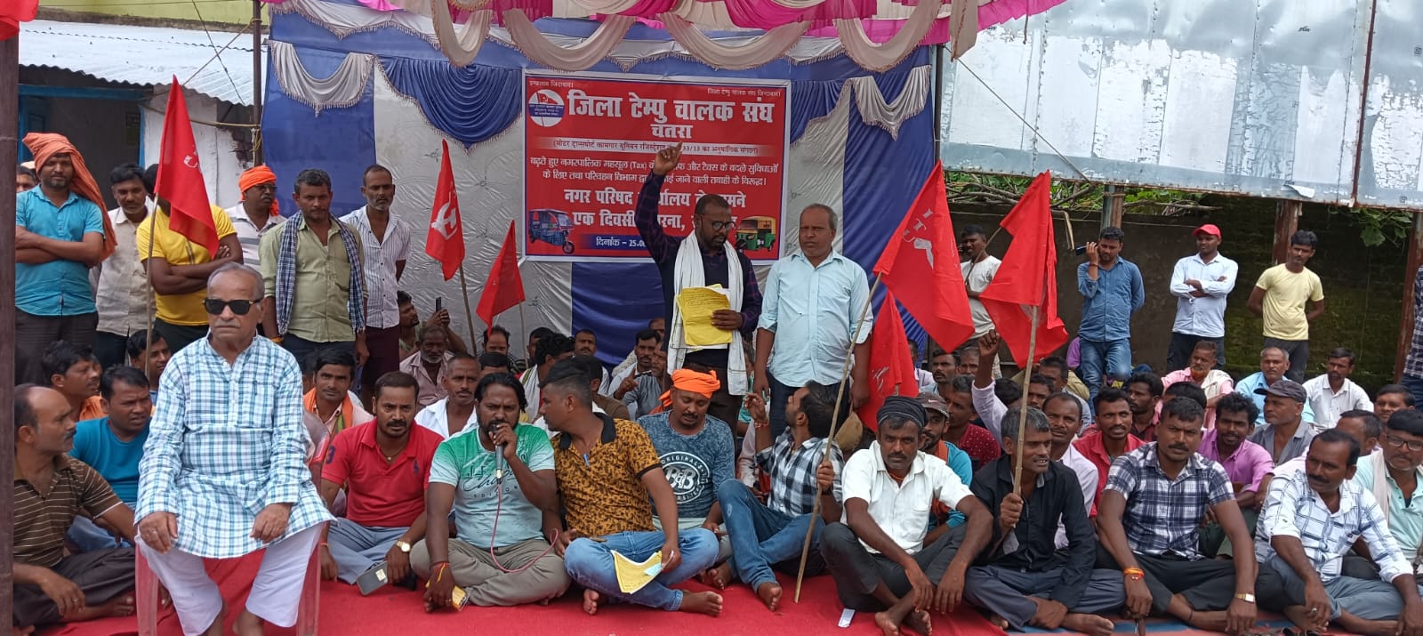 चतरा जिला टेंपूचालक संघ के जिला अध्यक्ष राजू कुमार दबगर की नेतृत्व में नगर परिषद कार्यालय के समक्ष अधिक राजस्व यानी टैक्स के विरोध में एक दिवसीय धरना – सत्याग्रह का आयोजन किया गया। इस कार्यक्रम का समर्थन कामरेड लक्ष्मी कांत शुक्ला मोटर ट्रांसपोर्ट कामगार यूनियन महा मंत्री और कांग्रेस के महा सचिव राजवीर ने अपना समर्थन दिया है।टेंपूचालक संघ ने अपने माँग पत्र में कहा है कि हज़ारीबाग जैसे बड़े शहर में 10 रुपये प्रति टेंपू वसूला जाता है। जबकि चतरा जैसे छोटे शहर में, जो एक छोर से दूसरे छोर तक लगभग 2 से 3 किलोमीटर की दूरी है, प्रति टेंपू 24 रुपये प्रतिदिन वसूला जा रहा है। यह पूरी तरह से अनैतिक कार्य है। इस संबंध में संघ ने 18 जुलाई 2025 को नगर परिषद के कार्यपालक पदाधिकारी को एक ज्ञापन सौंपकर अपनी समस्याएँ रखी थीं। उस समर्पित ज्ञापन पर लिए गए निर्णय की जानकारी संघ को नहीं दी गई। राजस्व वसूली पहले की तरह ही बेरहमी से की जा रही है।अपने मांग पत्र में टेंपूचालक संघ ने कहा है कि वे हर साल परिवहन विभाग को हजारों रुपये का रोड टैक्स देते हैं, वहीं दूसरी ओर नगर परिषद हमसे टैक्स वसूलती है, जो बढ़कर 24 रुपये प्रतिदिन हो गया है।हम टेंपू चालक वर्षों से अत्यधिक टैक्स का दंश झेल रहे हैं। लेकिन नगर परिषद द्वारा आज तक टेंपू चालकों को कोई सुविधा नहीं दी गई है। जबकि हम बराबर इसकी मांग करते आ रहे हैं।इसके अलावा संघ ने अपनी समस्याओं का ज़िक्र करते हुए कहा कि हम टेंपू चालकों के लिए टेंपू या टोटो, मिट्टी काटने वाले मजदूर के लिए कुदाल की तरह है। दरअसल हम मजदूर हैं जिन्हें कुदाल की बजाय टेंपू का मालिक कहा जाता है। हमें एक मजदूर के रूप में देखा जाना चाहिए, न कि टेम्पू मालिक के रूप में।टेंपूचालक संघ की पाँच सूत्री माँगों में शामिल हैं: 1. नगर परिषद का राजस्व (कर) हजारीबाग की तुलना में आधा यानी 5 रुपये प्रतिदिन की दर से शुल्क लिया जाए। 2. कर के बदले नो लॉस नो प्रॉफिट की तर्ज पर टेंपू स्टैंड, रैन बसेरा, कैंटीन संचालन और पेयजल की व्यवस्था की जाए। परिवहन विभाग द्वारा उत्पन्न आपदाओं पर रोक लगाई जाए। हमें प्रतिवर्ष एकमुश्त अनुदान दिया जाए और कर वसूलने वाले रंगदारों द्वारा टेंपू चालकों के साथ किए जा रहे दुर्व्यवहार पर रोक लगाई जाए।