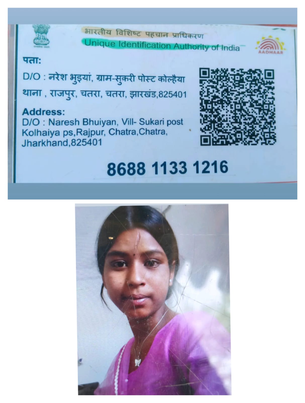 चतरा : राजपुर थाना क्षेत्र अंतर्गत कोल्हैया पंचायत के सुकरी गांव निवासी 18 वर्षीय मंजू कुमारी बीते 21 अप्रैल 2026 की संध्या से लापता है। मंजू कुमारी, नागेश भुइयाँ की पुत्री है। परिजनों के अनुसार वह शाम के समय अपने घर से निकली थी, जिसके बाद से उसका कोई पता नहीं चल पाया है। बताया जा रहा है कि मंजू की शादी 17 अप्रैल 2026 को सदर थाना क्षेत्र के लोवागड़ा निवासी अशोक भुइया के साथ हुई थी। परिवार वालों के अनुसार मंजू को अंतिम बार लोवागड़ा के पास देखा गया था। काफी खोजबीन और रिश्तेदारों के यहां तलाश करने के बाद भी जब उसका कोई सुराग नहीं मिला, तब मामले की सूचना राजपुर थाना को दी गई। सूचना मिलने के बाद पुलिस युवती की तलाश में जुट गई है। मंजू कुमारी की पहचान उसके चेहरे पर मौजूद लंबे कटे हुए निशान से की जा सकती है। बेटी के अचानक लापता हो जाने से परिवार में चिंता और बेचैनी का माहौल बना हुआ है। परिजन उसकी सकुशल वापसी की उम्मीद लगाए हुए हैं। परिजनों ने आम लोगों से अपील की है कि यदि किसी व्यक्ति को मंजू कुमारी के संबंध में कोई भी जानकारी मिले, तो तुरंत मोबाइल नंबर 9025467561 या 9693428564 पर संपर्क कर सूचना दें, ताकि युवती को जल्द से जल्द सुरक्षित घर वापस लाया जा सके।