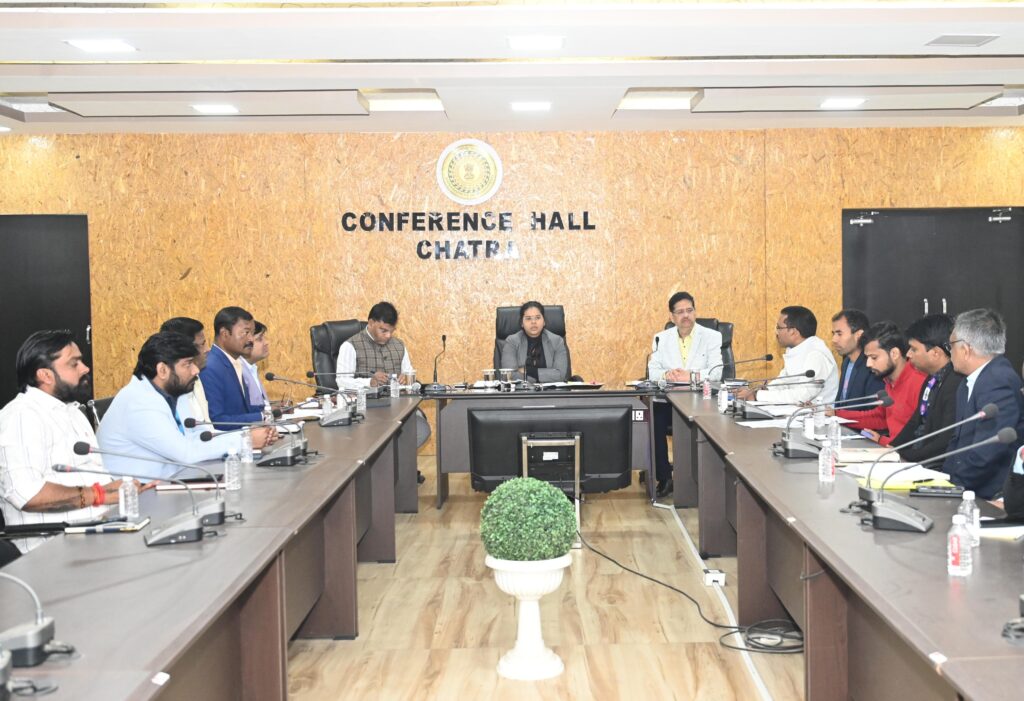 Chatra : तीन दिवसीय राजकीय इटखोरी महोत्सव–2026 के सफल एवं सुव्यवस्थित आयोजन को लेकर उपायुक्त कीर्तिश्री जी की अध्यक्षता में समाहरणालय स्थित सभा कक्ष में बैठक आयोजित की गई। बैठक में जिले में संचालित विभिन्न कोल परियोजनाओं के प्रतिनिधियों सहित संबंधित विभागों के पदाधिकारी उपस्थित रहे। उपायुक्त ने कहा कि 19, 20 एवं 21 फरवरी को आयोजित होने वाले राजकीय इटखोरी महोत्सव के दौरान विभिन्न कोल परियोजनाएँ एवं कंपनियाँ निर्धारित दिशा-निर्देशों के अनुरूप अपने-अपने ब्रांड एवं जनकल्याणकारी गतिविधियों का प्रदर्शन/प्रचार कर सकती हैं। उन्होंने स्पष्ट कहा कि महोत्सव का आयोजन जिला प्रशासन के तत्वावधान में गरिमामय एवं सांस्कृतिक वातावरण में किया जाएगा, जिसमें सभी सहभागियों से सकारात्मक सहयोग अपेक्षित है। बैठक के दौरान महोत्सव में आयोजित होने वाली सांस्कृतिक संध्या हेतु कलाकारों के चयन की प्रक्रिया पर भी विस्तृत विचार-विमर्श किया गया। इस संबंध में पारदर्शिता एवं गुणवत्ता सुनिश्चित करने हेतु संबंधित पदाधिकारियों को आवश्यक दिशा-निर्देश दिए गए। उपायुक्त ने सभी विभागों को समन्वय स्थापित कर समयबद्ध तैयारियाँ सुनिश्चित करने का निर्देश दिया। बैठक में उप विकास आयुक्त अमरेंद्र कुमार सिन्हा, अनुमंडल पदाधिकारी चतरा जहूर आलम, अनुमंडल पदाधिकारी सिमरिया माहेश्वरी प्रसाद, जिला नियोजन पदाधिकारी मन्नू कुमार, जिला अग्रणी प्रबंधक (एलडीएम) सहित विभिन्न कोल परियोजनाओं के प्रतिनिधि एवं अन्य संबंधित पदाधिकारी एवं कर्मी उपस्थित थे।