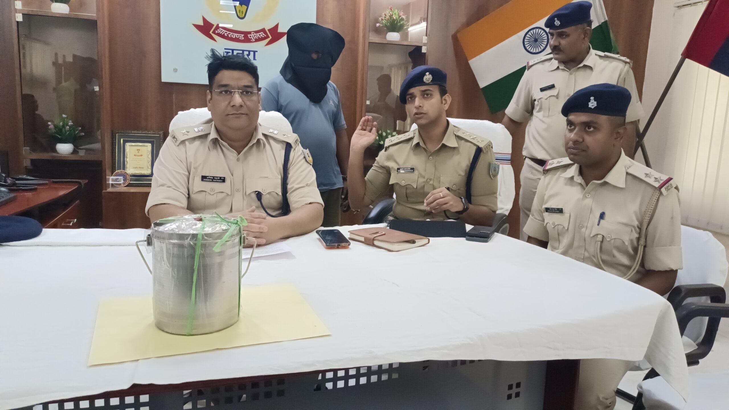 Chatra : झारखंड सरकार के निर्देश पर चतरा पुलिस लगातार अफीम तस्करों की कमर तोड़ने में लगी है। पुलिस ने मंगलवार को बड़ी कार्रवाई में कुंदा थाना क्षेत्र में कार्रवाई करते हुए साढ़े सोलह लाख रु की अफीम बरामद की। समाहरणालय स्थित कार्यालय कक्ष में आज प्रेस वार्ता को संबोधित करते हुए एसपी अनिमेष नैथानी ने बताया कि गुप्त सूचना मिली थी कि कुंदा थाना क्षेत्र के टीटही भरगांव में नंदकिशोर गंझू के घर पर व्यापार के लिए अफीम रखा हुआ है। सूचना पर त्वरित कार्रवाई करते हुए सिमरिया अनुमंडल के पुलिस पदाधिकारी नागरगोजे शुभम भाऊसाहेब के नेतृत्व में टीम का गठन करते हुए सफलता प्राप्त की गई। उन्होंने बताया कि मौके से तस्कर नंदकिशोर गंझू को 3 किलो 264 ग्राम अफीम के साथ गिरफ्तार कर लिया गया। बताया कि बीते दिनों लावालौंग थाना क्षेत्र में भी पुलिस ने बड़ी कार्रवाई में 24 लाख रु के मादक पदार्थों की बरामदगी की गई थीं। उन्होंने बताया कि अंतरराष्ट्रीय बाजार में बरामद अफीम की कीमत लगभग 16 लाख 50 हजार रु है। छापामारी टीम में कुंदा थाना प्रभारी प्रिंस कुमार सिंह,सहायक अवर निरीक्षक नागेश्वर पंडित और थाना सशस्त्र बल के जवान शामिल थे। इस मामले में कुंदा थाना कांड संख्या 24/26 दिनांक 22 अप्रैल 26 एवं 15/18/27/29 एनडीपीएस एक्ट के तहत मामला दर्ज किया गया है।