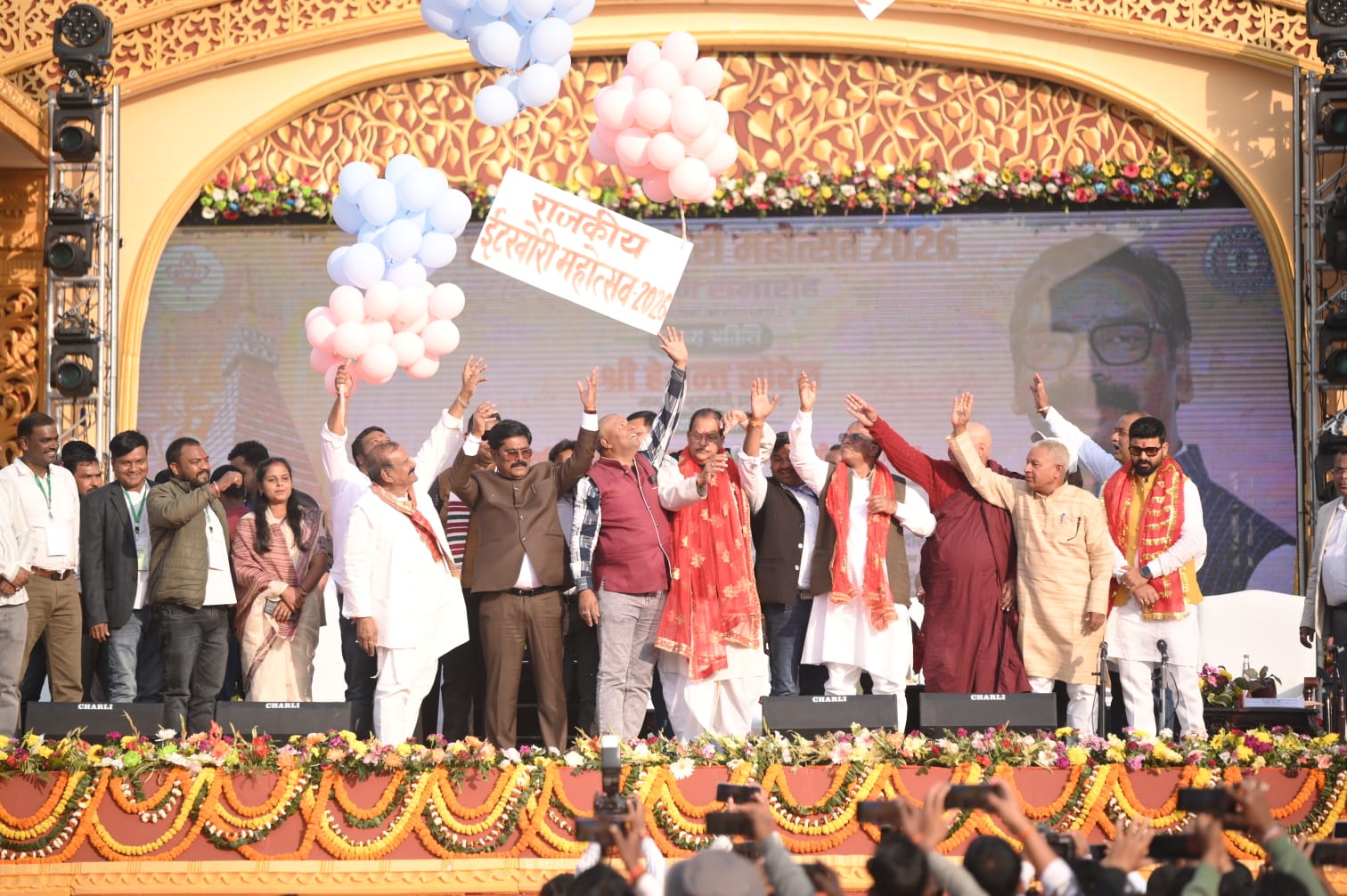 Chatra : तीन दिवसीय राजकीय इटखोरी महोत्सव 2026 का शुभारंभ आज भव्य उद्घाटन समारोह के साथ हुआ। उद्घाटन समारोह में झारखंड सरकार के मंत्री, वित्त विभाग, वाणिज्य कर विभाग, योजना एवं विकास विभाग तथा संसदीय कार्य विभाग के मंत्री राधा कृष्ण किशोर एवं पेयजल एवं स्वच्छता विभाग, उत्पाद एवं मद्य निषेध विभाग के मंत्री योगेंद्र प्रसाद विशिष्ट अतिथि के रूप में उपस्थित हुए और दीप प्रज्वलित कर महोत्सव का विधिवत उद्घाटन किया। इस अवसर पर चतरा लोकसभा क्षेत्र के सांसद कालीचरण सिंह, चतरा के विधायक जनार्दन पासवान, सिमरिया के विधायक उज्ज्वल कुमार दास, जिला परिषद अध्यक्षा ममता कुमारी एवं जिला परिषद उपाध्यक्ष ब्रिज किशोर तिवारी समेत कई जनप्रतिनिधि एवं गणमान्य नागरिक उपस्थित रहे।समारोह के दौरान अतिथियों द्वारा इटखोरी की ऐतिहासिक, सांस्कृतिक एवं आध्यात्मिक विरासत को समर्पित कॉफी टेबल बुक का विमोचन किया गया। साथ ही श्रद्धालुओं एवं आमजनों की सुविधा हेतु मां भद्रकाली मंदिर के लिए विकसित आधिकारिक वेबसाइट का भी लोकार्पण किया गया। उद्घाटन के उपरांत सभी अतिथियों ने मां भद्रकाली मंदिर पहुंचकर पूजा-अर्चना की एवं राज्य की सुख-समृद्धि की कामना की।