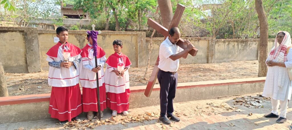 चतरा : स्थानीय संत तेरेसा चर्च परिसर में गुड फ्राइडे के उपलक्ष्य में शुक्रवार को विशेष प्रार्थना सभा का आयोजन किया गया। कार्यक्रम का शुभारंभ फादर नोबोर कुजूर ने सामूहिक प्रार्थना कर किया। तत्पश्चात मिस्सा पूजा का आयोजन किया गया। फादर ने ईसाई धर्मावलंबियों को मानवता का पाठ पढ़ाया। कहा कि जन कल्याण के लिए प्रभु यीशु ने जन्म लिया था। दुनिया के लोगों का पाप से छुटकारा के लिए प्रभु यीशु ने अपना बलिदान क्रुश पर चढकर दिया। उनका एक मात्र उद्देश्य संसार में पाप कम करना था। गुड फ्राइडे मानवता, प्रेम, आदर और क्षमा का संदेश देता है। उसके बाद प्रभु यीशु को क्रूस पर लटकाने से पूर्व उनके साथ की घटित घटनाओं पर आधारित झांकी प्रस्तुत की गई। फादर नोबोर कुजूर ने बताया कि मानव के कल्याण के लिए प्रभु यीशु का जन्म हुआ था। उन्होंने बताया कि प्रभु यीशु को फ्राइडे के दिन ही कलवारी पहाड़ी पर क्रूस से लटकाया गया था। क्रूस पर लटकाए जाने से पूर्व उनके शरीर पर चौदह स्थानों पर विभिन्न प्रकार की यातनाएं दी गई थी। जिसमें प्रमुख व अमानवीय यातनाएं दसवें तथा ग्यारहवें स्थान पर उनका कपड़ा उतारा जाता है। 12वें स्थान पर उन्हें क्रूस पर चढ़ा दिया जाता है। 13वें स्थान पर प्रभु यीशु को क्रूस से उतारा जाता है और 14वें स्थान पर उन्हें कब्र पर रखा जाता है। फादर ने बताया कि मृत्यु के तीन दिन बाद यानी प्रभु यीशु पुन: जीवित हो गए थे। जिसकी खुशी में ईस्टर पर्व मनाया जाता है। उन्होंने बताया कि प्रभु यीशु ने अपनी जान देकर भी मानव जाति की रक्षा की थी। तभी मानव जाति स्वतंत्र, आजाद व जीवित है। इसी खुशी में हम गुड फ्राइडे मनाते है। मौके पर सैकड़ों की संख्या में इसाई धर्मावलंबी उपस्थित थे।