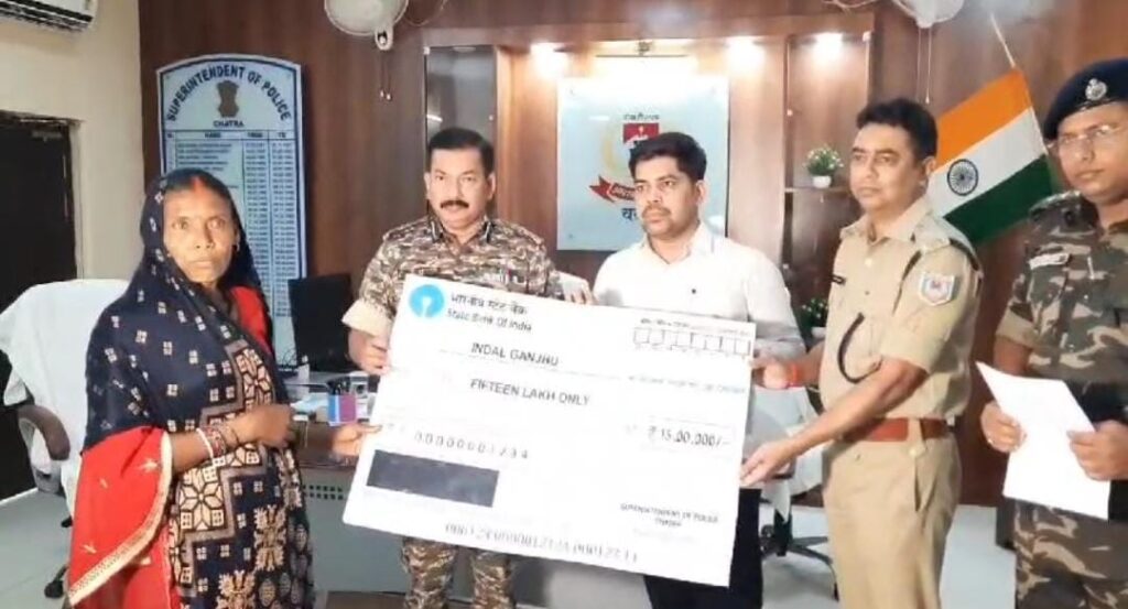 . दिनांक- 04.05.2023 को भा०क०पा० माओवादी का रिजनल कमिटी सदस्य (15 लाख ईनामी) इंदल गंझू उर्फ ललन गंझू उर्फ उमा उर्फ बढ़न, पिता- हरिहर भोक्ता, ग्राम-असरैन, थाना- ईमामगंज, जिला-गया (बिहार)। . दिनांक 08.06.2023 को भा०क०पा० माओवादी के शीर्ष ईनामी जोनल कमाण्डर (10 लाख ईनामी) अमरजीत यादव उर्फ टिंगू उर्फ लखन यादव पिता-स्व० मोती यादव, ग्राम-गड़हातरी, थाना-बाराचट्टी जिला गया (बिहार)। दिनांक 08.05.2023 को सब जोनल (05 लाख ईनामी) कमाण्डर सहदेव यादव उर्फ लटन यादव, सुदर्शन, पिता स्व० झुमक यादव, ग्राम-सिकिद, थाना- राजपुर, जिला-चतरा । दिनांक 08.11.2023 को भा०क०पा० माओवादी संगठन रिजनल कमिटी सदस्य (15 लाख ईनामी) नवीन उर्फ सरबजीत यादव उर्फ विजय यादव पिता सिंधु यादव, ग्राम बसबुटा थाना प्रतापपुर जिला चतरा का नाम शामिल है।”नई दिशा” के तहत से उपरोक्त आत्समर्पित नक्सलियों को खुला जेल (open jail) -सह- पुनर्वास कैंप हजारीबाग में रह रहे हैं. आज बुधवार को झारखण्ड सरकार के द्वारा पुरस्कृत राशि को उक्त आत्मसमर्पित नक्सलियों के परिजनों को चेक के माध्यम डीसी रमेश घोलाओ और एसपी विकास कुमार पांडे ने संयुक्त रूप से सौपा जा है।
