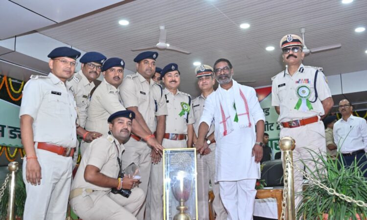 20वीं झारखंड राज्य पुलिस ड्यूटी मीट-2025 के समापन समारोह में सम्मिलित हुए मुख्यमंत्री हेमन्त सोरेन।