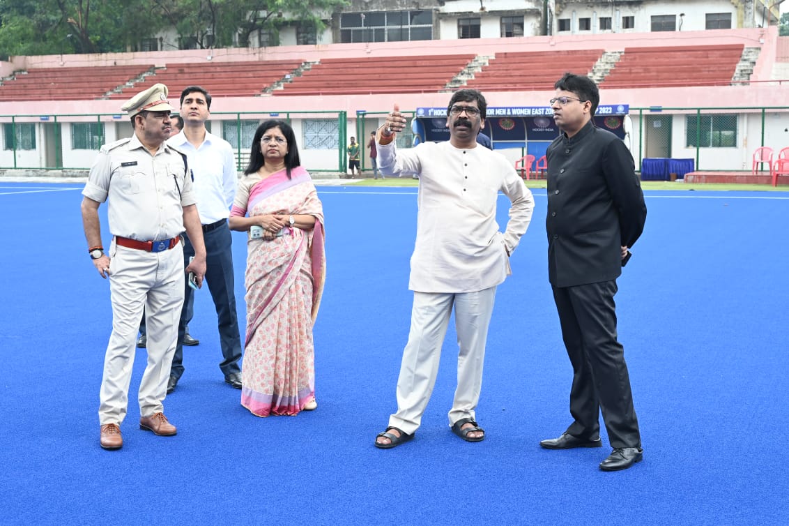 Ranchi : मुख्यमंत्री श्री हेमन्त सोरेन ने आज मोरहाबादी स्थित मरांग गोमके जयपाल सिंह मुंडा एस्ट्रोटर्फ स्टेडियम का निरीक्षण किया। आगामी एशियन महिला हॉकी चैंपियनशिप को लेकर मुख्यमंत्री ने अधिकारियों को स्टेडियम की व्यवस्था से जुड़ी कई अहम दिशा-निर्देश दिए। मुख्यमंत्री ने कहा कि मरांग गोमके जयपाल सिंह मुंडा एस्ट्रोटर्फ स्टेडियम में खिलाड़ियों एवं दर्शकों के लिए अंतरराष्ट्रीय स्तर की सुविधाएं प्रदान करना राज्य सरकार की प्राथमिकता है। यह स्टेडियम राज्य का इंटरनेशनल एस्ट्रोटर्फ हॉकी स्टेडियम है, इस स्टेडियम की व्यवस्थाएं उच्च स्तरीय होनी चाहिए। मौके पर मुख्यमंत्री ने स्टेडियम में बिछाई गई आधुनिक ब्लू टर्फ का निरीक्षण किया। मुख्यमंत्री के समक्ष अधिकारियों ने कहा कि स्टेडियम में अभी रिनोवेशन का कार्य प्रगति पर है। मुख्यमंत्री ने स्टेडियम का अवलोकन करते हुए दर्शक दीर्घा में लगी कुर्सियों की साफ-सफाई तथा पेंटिंग, स्टेडियम परिसर का रंगरोंगन, मैदान के अंदर एवं बाहर लगे एलईडी स्क्रीन को दुरुस्त करने, स्टेडियम में चिन्हित जगहों पर स्पोर्ट्स पर्सन का फोटो लगाने, स्कोर डिस्प्ले स्क्रीन को बड़ा करने सहित कई अन्य अत्याधुनिक सुविधाओं से संबंधित दिशा-निर्देश अधिकारियों को दिए।