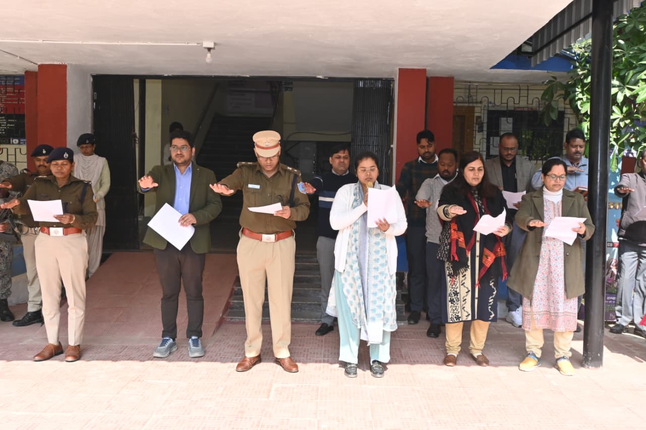 Chatra : संविधान दिवस के अवसर पर आज समाहरणालय परिसर में एक गरिमामय कार्यक्रम का आयोजन किया गया। कार्यक्रम की अध्यक्षता उपायुक्त कीर्तिश्री ने की, जबकि पुलिस अधीक्षक सुमित कुमार अग्रवाल विशेष रूप से उपस्थित रहे। कार्यक्रम के दौरान उपायुक्त एवं पुलिस अधीक्षक ने राष्ट्र के सर्वोच्च ग्रंथ भारतीय संविधान की उद्देशिका का वाचन किया। तत्पश्चात उपस्थित सभी कर्मियों एवं पदाधिकारियों ने उद्देशिका को सामूहिक रूप से दोहराया और संविधान में निहित आदर्शों—न्याय, स्वतंत्रता, समता एवं बंधुत्व—के प्रति अपनी प्रतिबद्धता व्यक्त की। इस अवसर पर अधिकारियों ने कहा कि संविधान न केवल शासन का आधार है, बल्कि नागरिकों के अधिकारों, कर्तव्यों और लोकतांत्रिक मूल्यों का पथप्रदर्शक भी है। उन्होंने सभी कर्मियों से आग्रह किया कि वे अपने दायित्वों के निर्वहन में संवैधानिक मूल्यों को सर्वोपरि रखें।
