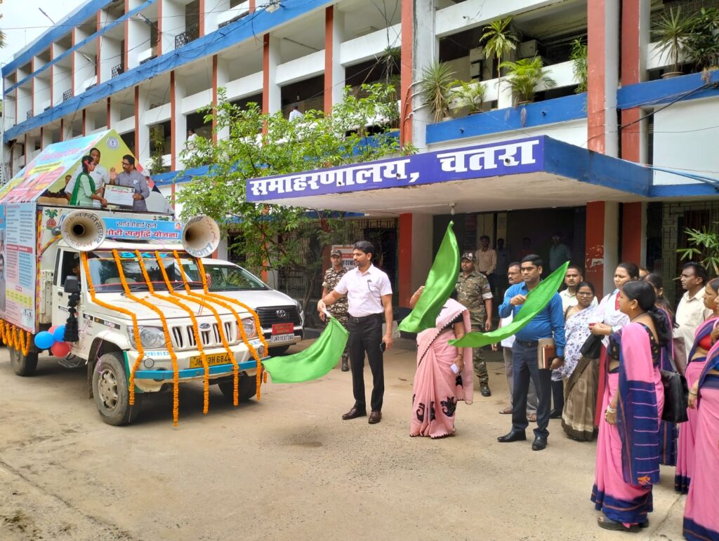 चतरा : बाल विवाह, दहेज प्रथा को समाप्त करने व किशोरियों/बालिका के उच्च शिक्षा को बढ़ावा देने हेतु राज्य सरकार की महत्वकांक्षी योजना सावित्रीबाई फुले किशोरी समृद्धि योजना के प्राप्त लक्ष्य को शत प्रतिशत पूर्ण करने एवं सभी योग्य किशोरियों को लाभान्वित करने के उद्देश्य से आज समाहरणालय परिसर से उपायुक्त श्री अबु इमरान ने सावित्रीबाई फुले किशोरी समृद्धि योजना के जागरूकता रथ को हरी झंडी दिखा कर रवाना किया।