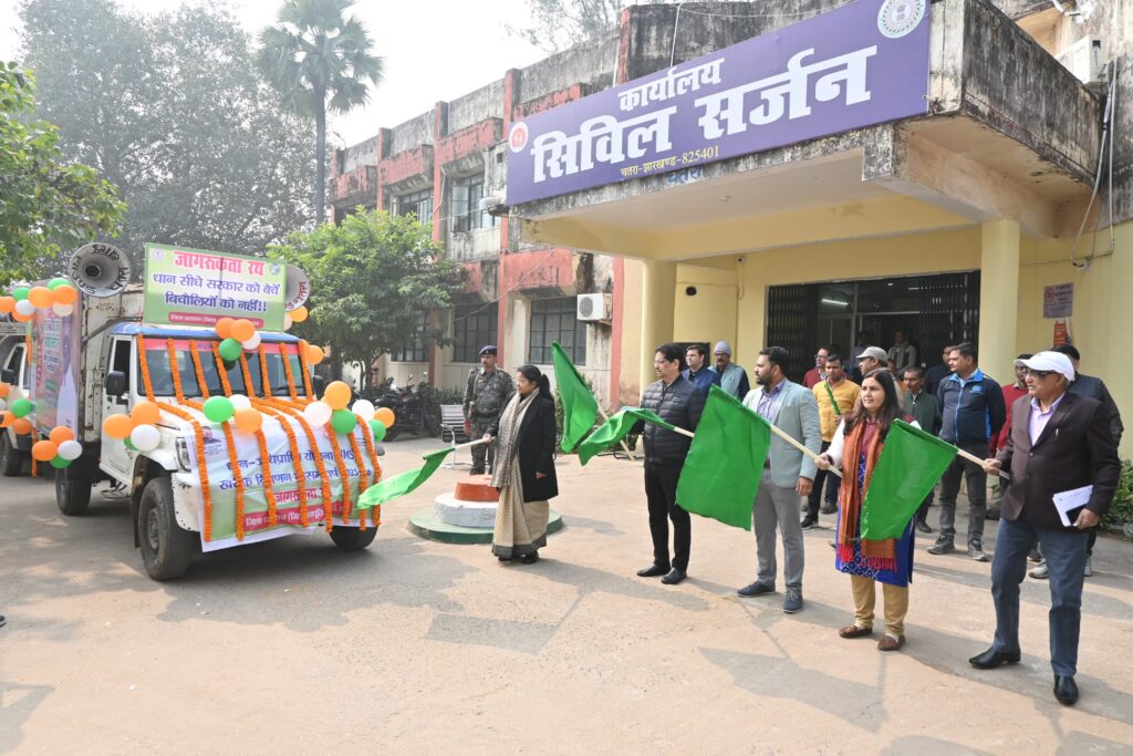 Chatra : धान अधिप्राप्ति प्रक्रिया को लेकर किसानों में जागरूकता बढ़ाने के उद्देश्य से आज सिविल सर्जन कार्यालय, चतरा परिसर से जिला आपूर्ति विभाग द्वारा तैयार किए गए प्रचार-प्रसार वाहन को उपायुक्त श्रीमती कीर्तिश्री ने हरी झंडी दिखाकर रवाना किया। इस अवसर पर उपायुक्त ने कहा कि जिले के अधिक से अधिक किसानों को सरकारी निर्धारित व्यवस्था के तहत धान अधिप्राप्ति का लाभ मिल सके, इसके लिए प्रचार-प्रसार अभियान चलाया जा रहा है। उन्होंने बताया कि वर्तमान में चतरा जिले में चिन्हित 28 धान अधिप्राप्ति केंद्र एवं 05 एफपीओ, अर्थात कुल 33 केंद्रों के माध्यम से धान अधिप्राप्ति की कार्रवाई संचालित की जा रही है।प्रचार-प्रसार वाहन जिले के विभिन्न ग्रामीण एवं शहरी क्षेत्रों में भ्रमण कर किसानों को धान अधिप्राप्ति प्रक्रिया, आवश्यक दस्तावेजों एवं पंजीकरण की जानकारी देगा। किसानों को विशेष रूप से यह संदेश दिया जाएगा कि जिन किसानों का अब तक पंजीकरण नहीं हो पाया है, वे ई-उपार्जन पोर्टल (https://uparjan.jharkhand.gov.in) पर शीघ्र अपना निबंधन सुनिश्चित करें, ताकि उन्हें धान बिक्री में किसी प्रकार की कठिनाई न हो।कार्यक्रम के दौरान उप विकास आयुक्त अमरेंद्र कुमार सिन्हा, सिविल सर्जन चतरा डॉ. जगदीश प्रसाद, अनुमंडल पदाधिकारी सिमरिया सन्नी राज, जिला आपूर्ति पदाधिकारी नीतू सिंह, सहित अन्य संबंधित पदाधिकारी एवं कर्मी उपस्थित थे।
