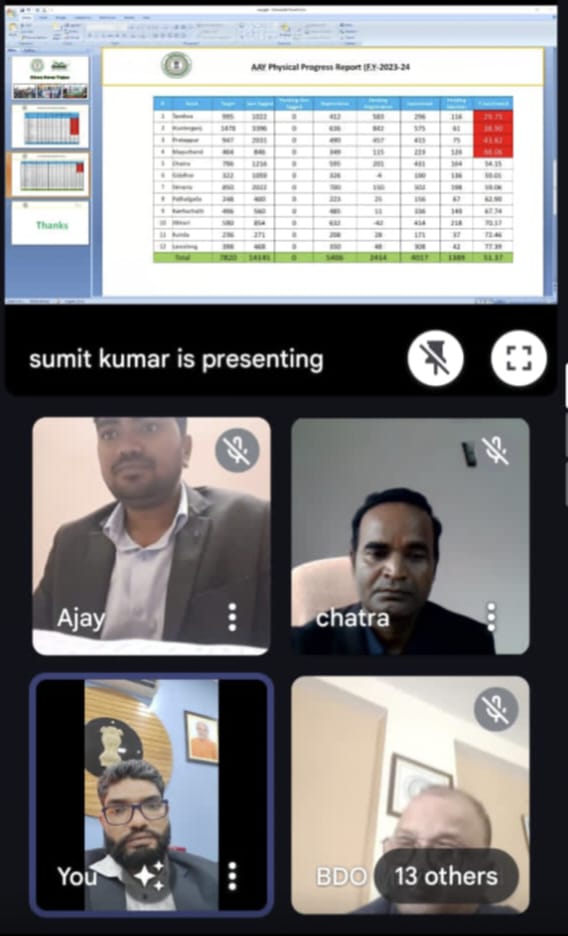 HomeChatra Newsअबुआ आवास योजना को लेकर उपायुक्त ने प्रखंड विकास पदाधिकारी के साथ किया ऑनलाइन बैठक,योग्य व आहर्ता रखने वाले लाभुकों को योजना का लाभ दें Feb. 16, 2024 at 8:06 pmChatra Newsअबुआ आवास योजना को लेकर उपायुक्त ने प्रखंड विकास पदाधिकारी के साथ किया ऑनलाइन बैठक,योग्य व आहर्ता रखने वाले लाभुकों को योजना का लाभ देंSankalan NewsFebruary 16, 2024February 16, 2024no commentचतराChatra News81 views Tags :चतराtweet share on Facebookshare on Twittershare on Pinterestshare on LinkedInshare on Redditshare on Emailadd a comment Leave a Response Cancel replyCommentName Email Save my name, email, and website in this browser for the next time I comment. Sankalan Newsview all postsचतरा उपायुक्त अबु इमरान ने आज चतरा सदर प्रखंड के पकरिया में नव निर्मित वृद्धा आश्रम संचालन का किया उद्घाटन। उपायुक्त ने उपस्थित वृद्ध लोगों के बीच धोती-साड़ी एवं कंबल का किया वितरण।निर्वाचन के कार्य को लेकर सभी कोषांग के नोडल पदाधिकारी के साथ हुई बैठकYou Might Also LikeChatra Newsहंटरगंज प्रखंड में उपायुक्त ने किया योजनाओं का व्यापक निरीक्षण, पारदर्शिता और गति पर विशेष बलSankalan NewsOctober 16, 2025October 16, 2025Chatra News01 किलो 90 ग्राम अफीम के साथ दो तस्कर गिरफ्तार, होंडा साइन मोटरसाइकिल बरामदSankalan NewsOctober 16, 2025October 16, 2025Chatra Newsचतरा में लोकसेतू पोर्टल के माध्यम से योजनाओं का लाभ दिलाने हेतु शिविरों का आयोजन,8,840 बच्चों के जन्म प्रमाण पत्र का आवेदन, 384 प्रमाण पत्र निर्गतSankalan NewsOctober 16, 2025October 16, 2025Chatra Newsचतरा उत्तरी वन प्रमंडल ने बड़ी कार्रवाई करते हुए, अवैध 6 आरा मिलों को किया ध्वस्तSankalan NewsOctober 15, 2025October 15, 2025