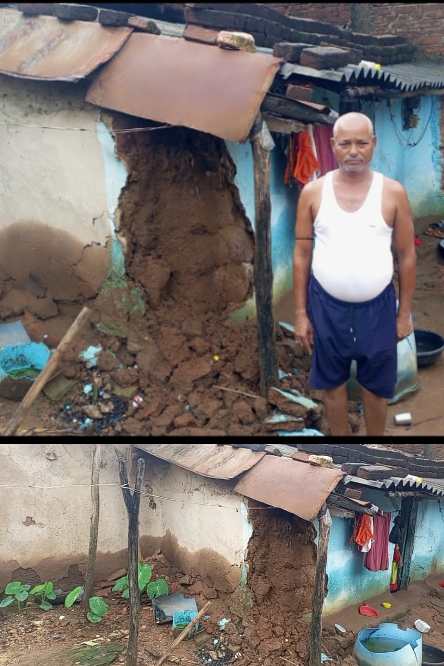 बारिश में कच्चा मकान हुआ धाराशाही, गरीब का गिरा आशियाना दूसरे के घर मे रहने को मजबूर