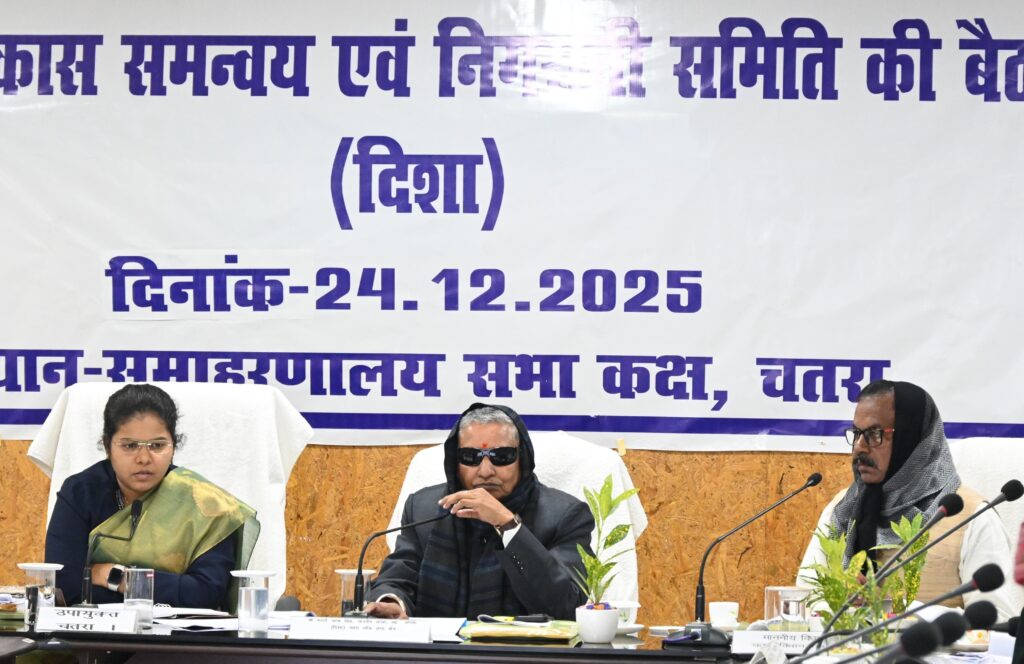 Chatra : समाहरणालय स्थित सभा कक्ष में माननीय सांसद, चतरा लोकसभा क्षेत्र कालीचरण सिंह की अध्यक्षता में जिला विकास समन्वय एवं निगरानी समिति (DISHA) की महत्वपूर्ण बैठक आयोजित की गई। बैठक का शुभारंभ अतिथियों के स्वागत स्वरूप पौधा भेंट कर किया गया। इस अवसर पर उपायुक्त कीर्तिश्री जी, चतरा विधायक जनार्दन पासवान, सिमरिया विधायक कुमार उज्ज्वल, बड़कागांव विधायक रौशन लाल चौधरी, सांसद प्रतिनिधि रविन्द्र सिंह (हजारीबाग), वन प्रमंडल पदाधिकारी (उत्तरी) राहुल मीणा एवं (दक्षिणी) मुकेश कुमार, उप विकास आयुक्त अमरेंद्र कुमार सिन्हा, अनुमंडल पदाधिकारी चतरा जहूर आलम एवं सिमरिया सन्नी राज, जिला जनसंपर्क पदाधिकारी शकील अहमद सहित सभी प्रखंड प्रमुख, दिशा के सदस्यगण एवं विभिन्न विभागों के वरीय पदाधिकारी उपस्थित रहे। बैठक में केंद्र एवं राज्य सरकार की प्रमुख जनकल्याणकारी योजनाओं—प्रधानमंत्री आवास योजना, जल जीवन मिशन, मनरेगा, शिक्षा, स्वास्थ्य, पोषण, बिजली, सड़क निर्माण, पीएम स्वनिधि योजना सहित अन्य योजनाओं—की अद्यतन प्रगति की विस्तार से समीक्षा की गई। इसके साथ ही 04 जुलाई 2025 को आयोजित पूर्व दिशा बैठक में उठाए गए बिंदुओं, जिनमें सांसद आदर्श ग्राम योजना, जिला खनिज फाउंडेशन ट्रस्ट (DMFT) मद से संचालित योजनाएँ, प्रधानमंत्री ग्राम सड़क योजना एवं पुल निर्माण कार्य, पेयजलापूर्ति, मुख्यमंत्री ग्राम सड़क योजना, प्रधानमंत्री आवास योजना तथा मातृत्व वंदना योजना शामिल हैं, उनके क्रियान्वयन एवं अनुपालन की स्थिति पर गहन चर्चा की गई। बैठक के दौरान वृद्धा पेंशन से संबंधित समस्याओं पर विशेष रूप से विचार किया गया। बताया गया कि अधिक आयु के कारण कई लाभुकों के बायोमैट्रिक सत्यापन में कठिनाई आ रही है, जिससे पेंशन राशि की निकासी बाधित हो रही है। इस संबंध में सामाजिक सुरक्षा विभाग ने अवगत कराया कि बायोमैट्रिक के अतिरिक्त आइरिस सत्यापन के माध्यम से भी लाभुकों को लाभान्वित किया जा रहा है, ताकि किसी भी पात्र व्यक्ति को योजना से वंचित न रहना पड़े। इसके अलावा कोयला परियोजनाओं से निकलने वाली राख से आमजन के स्वास्थ्य एवं आंखों पर पड़ने वाले दुष्प्रभावों को रोकने के लिए आवश्यक उपायों पर विचार-विमर्श किया गया तथा संबंधित परियोजना अधिकारियों को स्पष्ट दिशा-निर्देश दिए गए। कोल परियोजनाओं से जुड़े भारी वाहनों के कारण होने वाली सड़क दुर्घटनाओं पर नियंत्रण के लिए भी प्रभावी कदम उठाने पर सहमति बनी, जिससे दुर्घटनाओं में कमी लाई जा सके। बैठक में जिले के जर्जर सरकारी विद्यालयों एवं आंगनवाड़ी केंद्रों की मरम्मती कर उन्हें सुचारू रूप से संचालित करने का निर्देश दिया गया। साथ ही अधिक जनआवागमन वाले स्थानों को चिन्हित कर वहां दाल-भात 