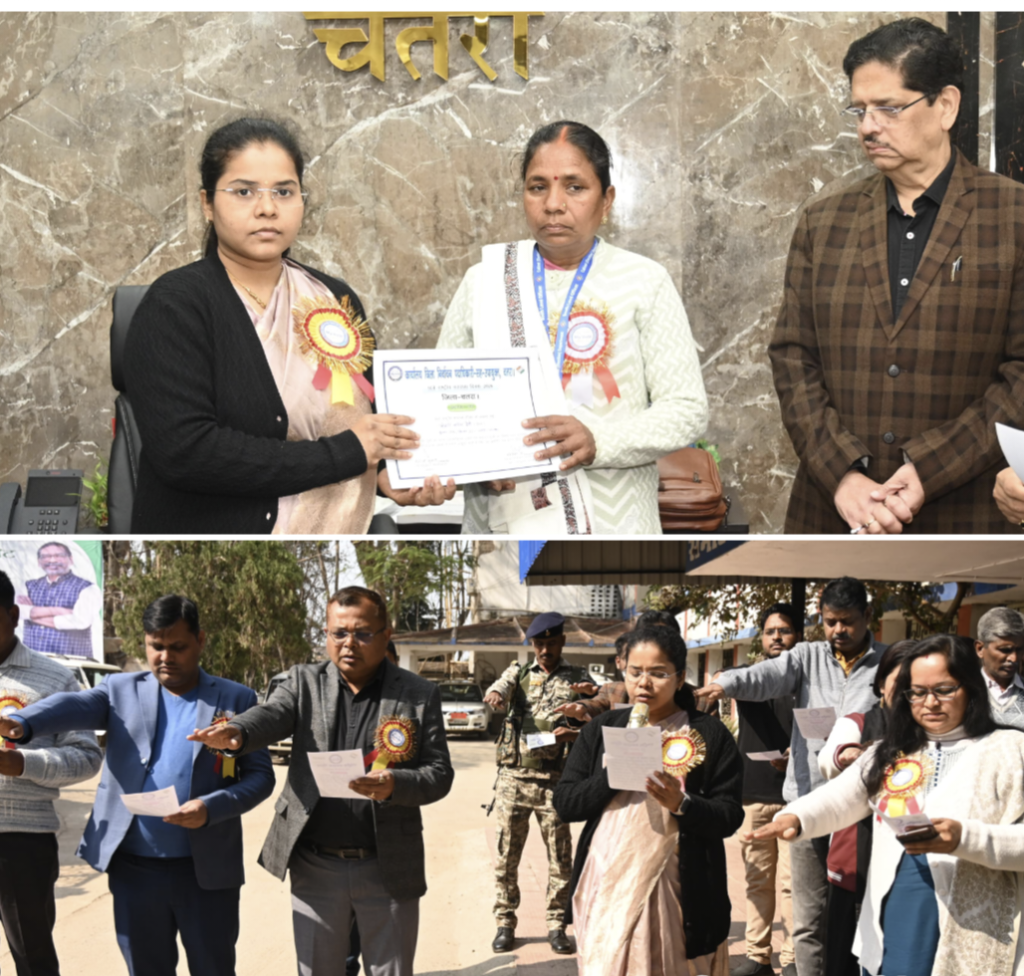 Chatra : राष्ट्रीय मतदाता दिवस 2026 के अवसर पर आज समाहरणालय परिसर में जिला निर्वाचन पदाधिकारी सह उपायुक्त कीर्तिश्री जी की अध्यक्षता में मतदाता प्रतिज्ञा कार्यक्रम का आयोजन किया गया। इस दौरान समाहरणालय परिसर में उपस्थित पदाधिकारियों एवं कर्मियों को जिला निर्वाचन पदाधिकारी सह उपायुक्त द्वारा मतदाता जागरूकता एवं लोकतांत्रिक मूल्यों के प्रति निष्ठा की शपथ दिलाई गई। इसके उपरांत समाहरणालय सभाकक्ष में जिला निर्वाचन पदाधिकारी सह उपायुक्त की अध्यक्षता में राष्ट्रीय मतदाता दिवस के उपलक्ष्य में जिला स्तरीय कार्यक्रम का आयोजन किया गया। कार्यक्रम में उपस्थित सभी जिला स्तरीय वरीय पदाधिकारियों, अधिकारियों एवं कर्मियों को मतदाता जागरूकता की शपथ दिलाई गई। इस अवसर पर जिला निर्वाचन पदाधिकारी सह उपायुक्त श्रीमती कीर्तिश्री जी ने कहा कि स्वतंत्र, निष्पक्ष एवं पारदर्शी निर्वाचन प्रक्रिया के लिए शुद्ध एवं त्रुटिरहित मतदाता सूची का होना अनिवार्य है। उन्होंने कहा कि बूथ लेवल ऑफिसर (बीएलओ) एवं बीएलओ सुपरवाइजरों की भूमिका निर्वाचन व्यवस्था में अत्यंत महत्वपूर्ण है, जो जमीनी स्तर पर मतदाता सूची को अद्यतन एवं त्रुटिरहित बनाने में सतत कार्य करते हैं। कार्यक्रम के दौरान मतदाता सूची के निर्माण एवं अद्यतन कार्य में उत्कृष्ट प्रदर्शन करने वाले बीएलओ एवं बीएलओ सुपरवाइजरों को प्रशस्ति पत्र प्रदान कर सम्मानित किया गया। सम्मानित कर्मियों में सिमरिया अनुमंडल क्षेत्र अंतर्गत पत्थलगड्डा प्रखंड के मतदान केंद्र संख्या 146, उत्क्रमित उच्च विद्यालय तेतरिया के बीएलओ मिथलेश कुमार, टंडवा प्रखंड के मतदान केंद्र संख्या 402, मध्य विद्यालय उलातू की बीएलओ कलावती देवी, सिमरिया प्रखंड के मतदान केंद्र संख्या 100 से 110 के बीएलओ सुपरवाइजर रोहित कुमार, गिद्धौर प्रखंड के मतदान केंद्र संख्या 172 से 181 की बीएलओ सुपरवाइजर प्रियंका प्रिया, चतरा अनुमंडल अंतर्गत हंटरगंज प्रखंड के मतदान केंद्र संख्या 1 से 10 के बीएलओ सुपरवाइजर अनिल कुमार गुप्ता, कुंदा प्रखंड के मतदान केंद्र संख्या 273 से 277 के बीएलओ सुपरवाइजर रंजन कुमार राजू, चतरा प्रखंड के मतदान केंद्र संख्या 368 की बीएलओ सरिता देवी तथा हंटरगंज प्रखंड के मतदान केंद्र संख्या 21 की बीएलओ सुधा कुमारी शामिल हैं। इस अवसर पर उप विकास आयुक्त अमरेंद्र कुमार सिन्हा, अपर समाहर्ता अरविंद कुमार, उप निर्वाचन पदाधिकारी वेदवंती कुमारी सहित जिला स्तरीय पदाधिकारी, कर्मी एवं अन्य संबंधित उपस्थित थे।