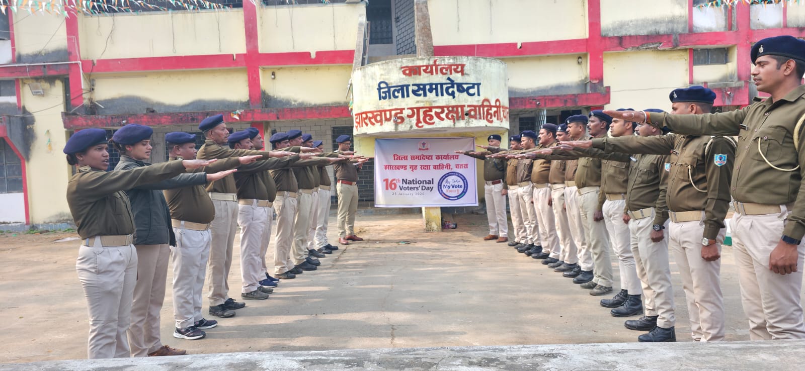 चतरा : गृहरक्षक वाहिनी कार्यालय में आज 16वें राष्ट्रीय मतदाता दिवस को बड़े उत्साह के साथ मनाया गया। यह दिवस हर वर्ष 25 जनवरी को लोकतंत्र की मजबूती के लिए मतदाता जागरूकता बढ़ाने हेतु आयोजित किया जाता है, जिसका इस वर्ष का विषय “मेरा भारत, मेरा वोट” है। मौके पर जिला समादेष्टा महोदय अमरेंद्र कुमार मुख्य अतिथि के रूप में उपस्थित रहे। उनके साथ निरीक्षक माजिद आलम, जिला समादेष्टा कार्यालय,मंडल कारा, उत्पाद विभाग, प्रमंडलीय विद्युत भंडार, वन विभाग, पुलिस केंद्र तथा भारतीय स्टेट बैंक के गृहरक्षा वाहिनी के जवान सक्रिय रूप से कार्यक्रम में भाग लेते नजर आए। जिला समादेष्टा अमरेंद्र कुमार ने संबोधन में मतदान के महत्व पर जोर दिया और सभी को सक्रिय मतदाता बनने का आह्वान किया। नवीन मतदाताओं को मतदाता जागरूकता शपथ दिलाई गई तथा लोकतांत्रिक मूल्यों को मजबूत करने पर चर्चा हुई।