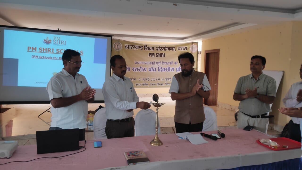 Chatra : भारत सरकार की महत्वाकांक्षी योजना के तहत पूरे भारत में 14500 विद्यालयों को पीएम श्री विद्यालय के रूप में चिन्हित करने के क्रम में चतरा जिले से चिन्हित 14 स्कूलों जिसमें उत्क्रमित उच्च विद्यालय मोक्तमा,मध्यविद्यालय दिवानखाना,मध्य विद्यालय गिद्धौर, उत्क्रमित उच्च विद्यालय तेतरिया, मध्य विद्यालय इटखोरी, उत्क्रमित उच्च विद्यालय टोनाटांड,उत्क्रमित मध्य विद्यालय राजपुर, उत्क्रमित प्राथमिक विद्यालय साहपुर,उत्क्रमित उच्च विद्यालय लावालौंग, उत्क्रमित मध्य विद्यालय हुसिया, उत्क्रमित मध्य विद्यालय नोंगांव, उत्क्रमित उच्च विद्यालय जोगियारा, कस्तूरबा गांधी बालिका विद्यालय सिमरिया, उत्क्रमित उच्च विद्यालय khadaiya के कुल 70 प्रधानाध्यापकों और शिक्षकों का पांच दिवसीय गैर आवासीय प्रशिक्षण झारखंड शिक्षा परियोजना चतरा के द्वारा आज दिनांक 1 जुलाई 2024 को उत्सव पैलेस चतरा में आयोजित किया गया।प्रशिक्षण का शुभारंभ जिला शिक्षा अधीक्षक चतरा अभिषेक बड़ाइक द्वारा दीप प्रज्वलन कर किया गया। जिला शिक्षा अधीक्षक चतरा ने शिक्षकों को संबोधित करते हुए शुभकामनाएं दी और मन से प्रशिक्षण प्राप्त करने की सलाह दी।एडीपीओ मनोज सिंह के द्वारा प्रशिक्षण में पीएम श्री स्कूलों को मिलने वाले विभिन्न प्रकार के भौतिक सुविधाओं इंफ्रास्ट्रक्चर आदि पर चर्चा किया गया । प्रशिक्षकों के द्वारा इन स्कूलों के 6 पिलर्स पर भी विस्तार से चर्चा किया गया। पीएम श्री योजना का उद्देश्य विद्यालयों में भौतिक और शैक्षणिक संसाधनों के अतिरिक्त विद्यालय के प्रति बच्चों और अभिभावकों का रुझान पैदा करना गुणवत्त शिक्षा सभी बच्चों को प्राप्त हो साथ ही नई शिक्षा नीति के सभी आयामों को लागू करना है। शिक्षा को रोचक बनाना विद्यालय परिसर में शिक्षा का बेहतर माहौल पैदा करना शिक्षको द्वारा शिक्षण कार्य में रुचि लेते हुए बच्चो को गुणवत्त शिक्षा प्रदान करना। प्रशिक्षण में प्रशिक्षक के रूप में एजाजुल हक, मनीष रंजन,हीरा लाल साहा, ज्योति सिंह तथा पीरामल फाउंडेशन से प्रेरणा ने प्रमुख भूमिका निभाई।