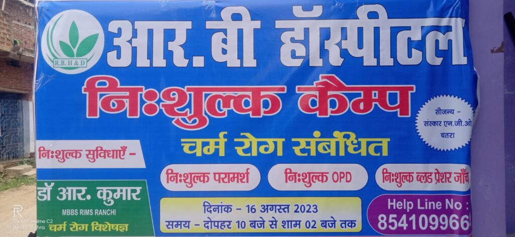 चतरा शहर के पुरानी कचहरी रोड स्थित आरबी हॉस्पिटल एंड डायग्नोस्टिक सेंटर में बुधवार को चर्म रोगियों के लिए निशुल्क स्वास्थ्य शिविर का आयोजन किया गया। शिविर में जिले के विभिन्न प्रखंडों से आए 200 से अधिक मरीजों का निशुल्क इलाज किया गया। शिविर में रिम्स के चर्म रोग विशेषज्ञ डॉ आर कुमार ने मरीजों का इलाज किया। इलाज के बाद जरूरत के हिसाब से मरीजों के बीच निशुल्क दवाइयों का भी वितरण किया गया। पत्रकारों से बात करते हुए डॉ आर कुमार ने कहा कि बदलते खान-पान के कारण चर्म रोगियों की संख्या में दिन प्रतिदिन बढ़ोतरी होते जा रही है। चर्म रोग के मरीज शुरुआती दिनों में अपने बीमारियों को हल्के में लेते हैं,और यही मरीजों के लिए घातक बन जाता है।