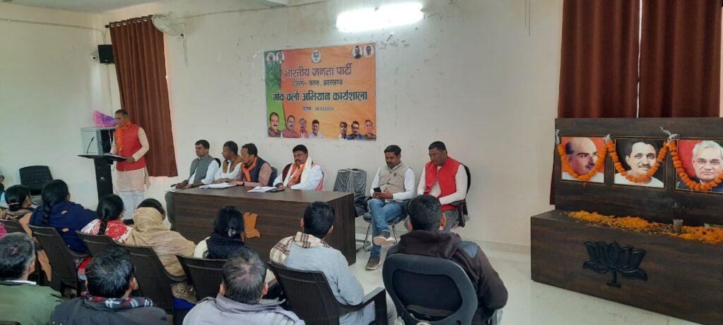 जिला अध्यक्ष अशोक शर्मा जी ने कहा कि चतरा जिले से सभी 914 बूथ पर बूथ कमेटी बनाई गई है। और सभी 914 बूथ पर प्रभारी एवं बुध अध्यक्ष द्वारा कार्य को देखेंगे इसके लिए प्रभारी एवं बुध अध्यक्षों का कार्यशाला मंडल स्तर पर कार्यकर्ताओं का 31 जनवरी तक कर लेना अनिवार्य होगा। कार्यक्रम को गांव चलो अभियान टोली के जिला सदस्य धर्मेंद्र साहू जिला मंत्री सतीश सिंह जिला प्रभारी विपिन बिहारी महामंत्री मृत्युंजय सिंह नंदकिशोर सुलभ आदि ने संबोधित किया एवं कार्यकर्ताओं में लोकसभा की तैयारी के बारे में बताया कार्यक्रम में निशा कुमारी शिवकुमार चौबे मंडल अध्यक्ष विद्यासागर आदि शंकर शॉप विनोद गुप्ता दया निधि सिंह गोविंद तिवारी देव कुमार सिंह विनोद डांगी जितेंद्र सिंह सतीश सिंह महेंद्र नायक गणेश सिंह अप्पू आर्य सभी मंडल के गांव चलो अभियान टोली के सदस्य गण मीरा कुमारी प्रियंका कुमारी चंपा देवी आदि सैकड़ो कार्यकर्ता उपस्थित हुए