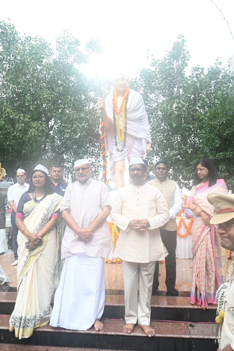 Ranchi : राज्यपाल श्री सी०पी० राधाकृष्णन एवं मुख्यमंत्री श्री हेमन्त सोरेन आज गांधी जयंती के अवसर पर मोरहाबादी मैदान स्थित बापू वाटिका पहुंचकर राष्ट्रपिता महात्मा गांधी की प्रतिमा पर माल्यार्पण कर उन्हें श्रद्धा सुमन अर्पित की तथा नमन किया। मौके पर बापू वाटिका स्थित महात्मा गांधी प्रतिमा स्थल पर भजन मंडली के कलाकारों ने बापू के प्रिय भजन तथा राम धुन प्रस्तुत किए। इस अवसर पर प्रेस-मीडिया के प्रतिनिधियों को संबोधित करते हुए माननीय मुख्यमंत्री श्री हेमन्त सोरेन ने कहा कि देश के लिए आज ऐतिहासिक दिन है। हम सभी लोग आज राष्ट्रपिता महात्मा गांधी की जयंती बड़ी शिद्दत और उमंग के साथ मना रहे हैं। आज यह प्रण लेने का दिन है कि किस प्रकार हम सभी लोग राष्ट्रपिता महात्मा गांधी जी के विचार, आदर्श, मार्गदर्शन तथा उनका संदेश स्वच्छ मन, स्वच्छ सोच तथा स्वच्छ समाज की परिकल्पना को साकार करें। मुख्यमंत्री ने कहा कि राष्ट्रपिता महात्मा गांधी विलक्षण प्रतिभा के धनी थे। हम सभी देशवासियों को इस बात का गर्व होना चाहिए कि राष्ट्रपिता महात्मा गांधी जैसा व्यक्तित्व हमारे देश ने पाया था। बापू के विचारों को अनुसरण करते हुए हमें त्याग और समर्पण की भावना से कार्य करने की आवश्यकता है, तभी सुखी एवं समृद्ध समाज की परिकल्पना पूरी होगी। इस अवसर पर राज्यसभा सांसद श्रीमती महुआ मांजी, मुख्यमंत्री के प्रधान सचिव श्रीमती वंदना दादेल, राज्यपाल के प्रधान सचिव डॉ० नितिन मदन कुलकर्णी, उपायुक्त रांची श्री राहुल कुमार सिन्हा, वरीय पुलिस अधीक्षक रांची श्री चंदन सिन्हा, राज्य खादी बोर्ड के सीईओ श्री आर०सी० बसेरा, टाना भगत समुदाय के प्रतिनिधि सहित अन्य गणमान्य लोग बड़ी संख्या में उपस्थित थे।