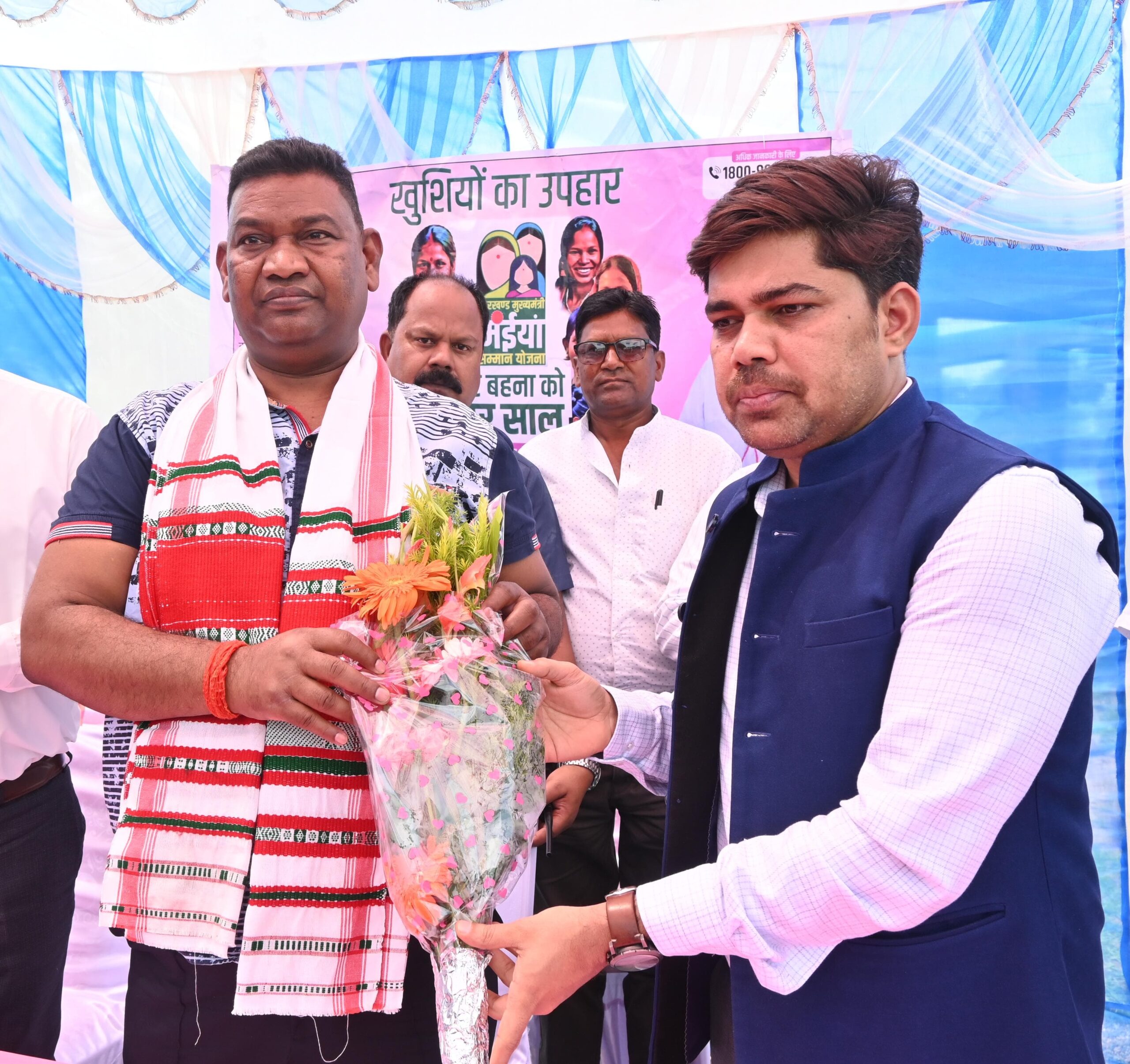 चतरा सदर प्रखंड के डाढ़ा पंचायत के ग्राम सेहदा में “झारखंड मुख्यमंत्री मंईयां सम्मान योजना” से 21 वर्ष से 50 वर्ष की पात्रता रखने वाली शत प्रतिशत बहनों को लाभान्वित करने हेतु विशेष शिविर का आयोजन किया गया। जिसमें बतौर मुख्य अतिथि राज्य के माननीय मंत्री उद्योग, श्रम नियोजन प्रशिक्षण एवं कौशल विकास विभाग झारखंड सरकार श्री सत्यानंद भोक्ता शामिल होकर विधिवत दीप प्रज्वलित कर शिविर का शुभारंभ किया। इसके उपरांत मंत्री सत्यानंद भोक्ता व उपायुक्त ने शिविर में फॉर्म रजिस्ट्रेशन प्रक्रिया का जायजा लिया और अधिकारियों को कई आवश्यक दिशा निर्देश दिए। वहीं मौके पर आदिम जनजाति परिवारों के बीच डाकिया योजना के तहत चावल का भी वितरण किया गया। शिविर में आई 21 से 50 वर्ष की आवेदिकाओं में झारखंड मुख्यमंत्री मंईयां सम्मान योजना को लेकर काफी उत्साह देखा गया। आवेदिकाओं ने उत्साहित होकर कहा 21 से 50 वर्ष की महिलाओं के लिए इस तरह का पहल माननीय मुख्यमंत्री झारखंड सरकार द्वारा किया गया है इस तरह के पहल के लिए माननीय मुख्यमंत्री को धन्यवाद। उक्त कार्यक्रम में उपविकास आयुक्त पवन कुमार मंडल, जिला नियोजन पदाधिकारी मन्नू कुमार, चतरा सदर प्रखंड विकास पदाधिकारी हरिनाथ महतो, समाजसेवी नवलकिशोर यादव, समाजसेवी रश्मि प्रकाश, जिला मंत्री प्रतिनिधि चंद्रिका यादव, समेत कई गणमान्य मौजूद रहे।