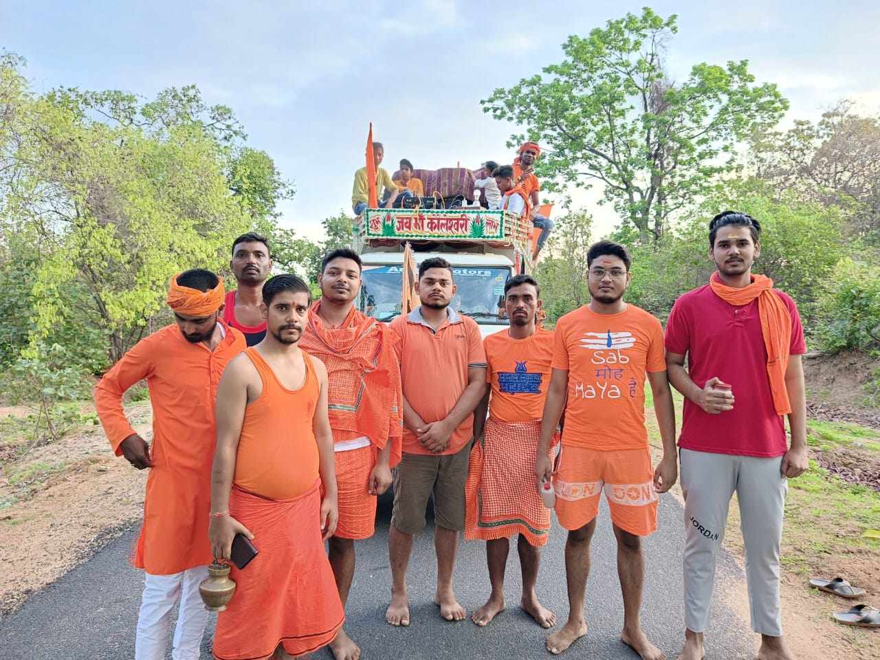 प्रतापपुर /चतरा : प्रखंड के सैकड़ों शिव भक्तों ने सावन मास के पहले सोमवारी के अवसर पर भोलेनाथ पर जलाभिषेक किया।इस अवसर पर सोमवार के अहले सुबह से ही सैकड़ों शिव भक्तों ने मुख्यालय से तीन किलोमीटर दूर स्थित पवित्र अमझरिया नदी से जल उठा कर 13 किलोमीटर दूर कुंदा के प्रसिद्ध महादेव मठ स्थित भोलेनाथ पर जलाभिषेक के लिए गाजे बाजे के साथ पैदल कावर तथा जल लेकर प्रस्थान किया। प्रतापपुर से कुंदा जाने के क्रम में सैकड़ों महिला एवं पुरुष श्रद्धालुओं के बोलबम के जयकारे से पुरा रास्ता एवं क्षेत्र गुंजायमान हो रहा था।इस अवसर पर कुंदा के महादेव मठ स्थिर भोलेनाथ पर जलाभिषेक करने जा रहे ऋषि कुमार,अतुल आनंद,रविकांत कुमार,राजा स्वर्णकार तथा रिशु कुमार सहित अन्य श्रद्धालुओं ने बताया कि प्रतापपुर के पवित्र अमझर नदी से जल उठा कर कुंदा के महादेव मठ स्थिर भोलेनाथ पर जलाभिषेक लगातार 17 वर्षों से किया जा रहा है।