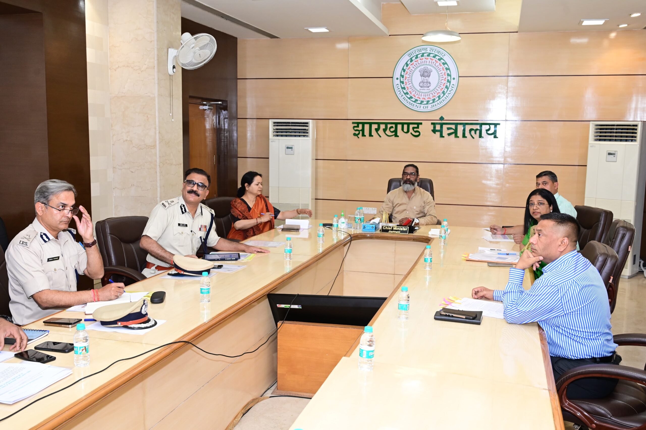 Ranchi : मुख्यमंत्री श्री हेमन्त सोरेन ने आज झारखंड मंत्रालय में आगामी पर्व-त्योहारों को देखते हुए राज्य में विधि व्यवस्था संधारण की उच्चस्तरीय समीक्षा की। मौके पर मुख्यमंत्री ने वरीय पुलिस अधिकारियों को आवश्यक दिशा-निर्देश दिए। बैठक में मुख्य सचिव श्रीमती अलका तिवारी, अपर मुख्य सचिव श्री अविनाश कुमार, प्रधान सचिव गृह विभाग श्रीमती वंदना दादेल, डीजीपी श्री अनुराग गुप्ता, पुलिस महानिरीक्षक विशेष शाखा श्री प्रभात कुमार, पुलिस महानिरीक्षक अभियान श्री ए०वी० होमकर, पुलिस महानिरीक्षक अपराध अनुसंधान विभाग श्री असीम विक्रांत मिंज, पुलिस महानिरीक्षक मुख्यालय श्री मनोज कौशिक सहित अन्य वरीय पुलिस अधिकारी उपस्थित थे।