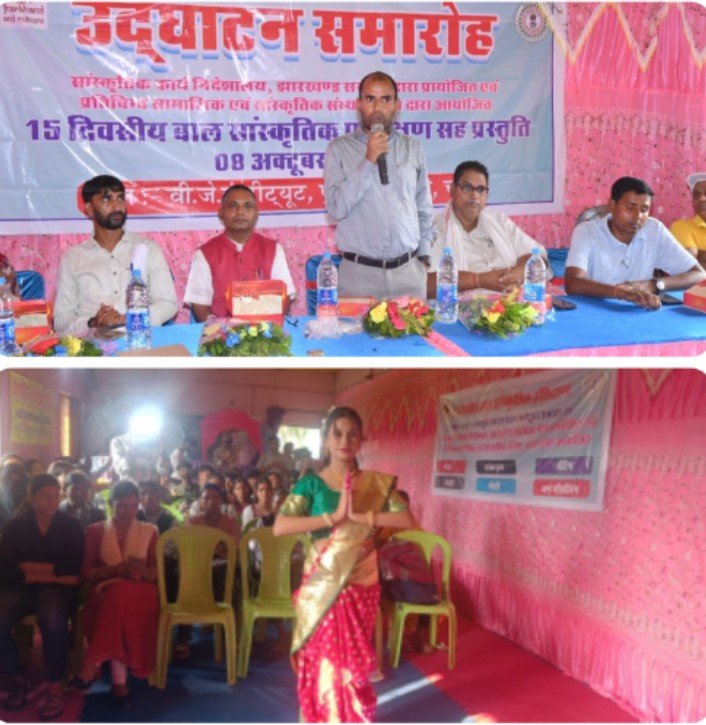 चतरा। सांस्कृतिक कार्य निदेशालय, झारखंड सरकार के तत्वाधान में चतरा की सामाजिक एवं सांस्कृतिक संस्था प्रतिबिंब के बैनर तले 15 दिवसीय बाल सांस्कृतिक प्रशिक्षण कार्यशाला का शुभारंभ बुधवार से पुरानी कचहरी परिसर स्थित वीजे इंस्टीट्यूट में हुआ। कार्यशाला का विधिवत उद्घाटन जिला खेल पदाधिकारी कैलाश राम ने दीप प्रज्वलित कर किया। उद्घाटन के पश्चात गणेश वंदना से कार्यक्रम की शुरुआत हुई। इस दौरान संस्था से जुड़े कुछ प्रतिभावशाली कलाकारों ने अपनी सुंदर प्रस्तुति दी। गीत संगीत से भरपूर समारोह में एक से बढ़कर एक कलाकार मौजूद थे। मुख्य अतिथि जिला खेल पदाधिकारी कैलाश राम ने कलाकारों को शुभकामना देते हुए कहा कि प्रशिक्षण कार्यक्रम पूरी तरह से सरकार द्वारा चलाया जा रहा है। इसलिए सभी विधाओं में बच्चे मन लगाकर प्रशिक्षण प्राप्त करें।मंच पर मौजूद जिला ओलम्पिक संघ के कार्यकारी अध्यक्ष चंद्रेश शर्मा ने शुभकामना देते हुए कहा कि इस प्रशिक्षण को पूरा कर जिला के साथ राज्य का नाम रौशन करें। उन्होंने प्रतिबिंब संस्था के सचिव प्रकाश कुमार के बारे में बताया कि पिछले 32 वर्षों से कला के क्षेत्र में जुड़े रहें हैं। इनके सानिध्य में उन्हें भी काम करने का अवसर मिला।साथ ही कई अन्य कलाकार जिला व राज्य में अपना परचम लहरा रहे हैं। शिक्षक दीपक कुमार ने भी बच्चो को शुभकामना देते हुए उत्साह वर्धन किया। और उनके उज्ज्वल भविष्य की कामना की। धन्यवाद ज्ञापन ओलम्पिक संघ के कोषाध्यक्ष जितेंद्र चंद्रवंशी ने किया।प्रतिबिंब संस्था के सचिव प्रकाश कुमार ने बताया कि कार्यशाला पूरी तरह से निःशुल्क है। इसमें 100 बालक/बालिका को छह विधाओं में प्रशिक्षित किया जाएगा। इन विधाओं में नाटक,नृत्य,मेंहदी,कले मॉडलिंग,पेंटिंग,रंगोली शामिल है। उन्होंने बताया की प्रशिक्षण का आयोजन 8 अक्टूबर से 13 अक्टूबर और 22 से 24 अक्टूबर तक आयोजित होगा। श्री कुमार ने बताया कि चूंकि यह प्रशिक्षण झारखंड सरकार की ओर से आयोजित किया जा रहा है। इसलिए इस प्रशिक्षण का काफी महत्व है। यहां से मिलने वाला प्रमाणपत्र सरकारी नौकरी में कारगर साबित होगा।