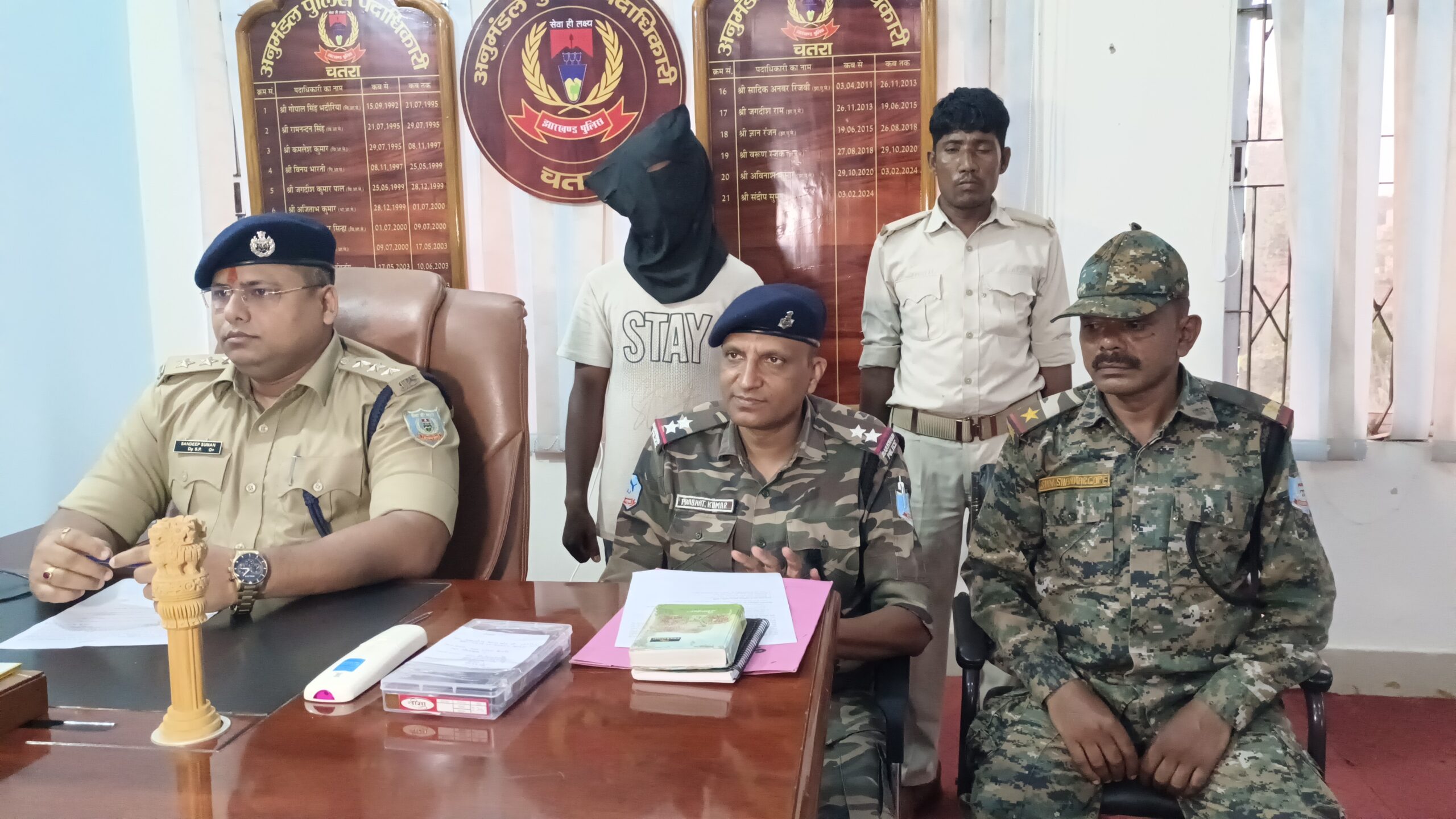 चतरा में सक्रिय बाइक चोर गिरोह के विरुद्ध हंटरगंज थाना पुलिस ने बड़ी कार्रवाई की है। विगत सात जुलाई को हंटरगंज थाना क्षेत्र में घटित मोटरसाईकिल चोरी कांड का पुलिस नें खुलासा कर लिया हैं। अनुमण्डल पुलिस पदाधिकारी संदीप सुमन को मिली गुप्त सूचना के आधार पर हंटरगंज थाना क्षेत्र के करमा-पाण्डेपुरा ईलाके से वाहन चेकिंग अभियान के दौरान काला रंग का चोरी का हीरो स्प्लेंडर मोटरसाईकिल के साथ एक चोर को धर दबोचा हैं। एसडीपीओ नें प्रेस कांफ्रेस कर बताया कि वाहन चेकिंग के दौरान थाना प्रभारी प्रभात कुमार और उनकी टीम में शामिल अधिकारियों व जवानों नें जब बाईक सवार युवक को रुकने का इसारा किया, तो वह पुलिस को देखकर गाड़ी घुमाकर मौके से भागने लगा। जिसके बाद चेकिंग में शामिल पुलिस कर्मियों के द्वारा दौड़कर उसे पकड़ा गया। जब गाड़ी के कागजात की मांग गई तो पकडे गए युवक नें चोरी की गाडी होने की बात बताई। जिसके बाद पकड़े गए चोर के निशानदेही पर एक अन्य चोरी का हीरो स्पलेण्डर मोटर साईकिल व हंटरगंज थाना में पूर्व से दर्ज एक अन्य चोरी के मोटर साईकिल की डिक्की को बरामद किया गया हैं। एसडीपीओ नें बताया कि गिरफ्तार चोर के पास से अलग-अलग नंबरों का दो चोरी का मोटरसाईकिल, चोरी के मोटर साईकिल का डिक्की व मोबाइल बरामद किया गया हैं। उन्होंने बताया कि गिरफ्तार चोर झारखंड-बिहार के सीमावर्ती इलाकों में वाहन चोरी की घटनाओं में संलिप्त रहा है। वह पूर्व में इसी मामले में बिहार में जेल जा चुका है। अनुमंडल पुलिस पदाधिकारी ने बताया कि गिरफ्तार चोर के पास से पूछताछ के दौरान कई साक्ष्य पुलिस को मिले हैं। गिरोह में शामिल अन्य अपराधियों की गिरफ्तारी को लेकर भी अभियान तेज कर दिया गया हैं। अनुमंडल पुलिस पदाधिकारी के अनुसार इस शातिर चोर की गिरफ्तारी से चतरा में वाहन चोरी की घटनाओं पर ब्रेक लगेगा। अभियान में थाना प्रभारी प्रभात कुमार, एसआई रूपेश कुमार, एएसआई शिव शंकर गोप समेत हंटरगंज थाना एवं पाण्डेपुरा पिकेट के सशस्त्र बल के जवान शामिल थे।