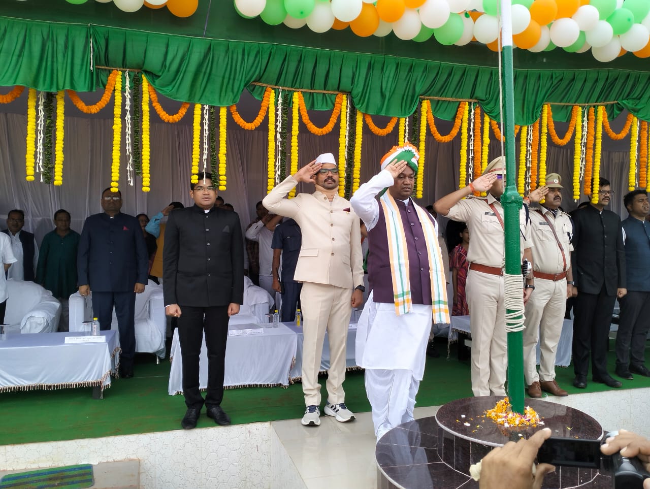 मंत्री ने मंच से संबोधित करते हुए सभी को 77वां स्वतंत्रता दिवस की शुभकामनाएं दिया। उन्होंने अपने भाषण में स्वतंत्रता दिवस की विशेषता बताते हुए राज्य सरकार द्वारा चलाए जा रहे जनकल्याणकारी योजनाओं के बारे में विस्तार पूर्वक बताया। साथ हीं शहीद के परिजनों, समेत अन्य का भी अभिवादन किया। आगे उन्होंने कहा कि विगत 76 वर्षों में भारतवर्ष में चहुँमुखी विकास हुआ आप इसके साक्षी है। महात्मा गांधी की परिकल्पना राम राज्य और अन्त्योदय को हम जमीन पर लाने के लिए संकल्पित है। हमारा मूल उद्देश्य है कि हम समाज के अंतिम पायदान पर खड़े तमाम लोगों के जीवन स्तर, सामाजिक, शैक्षणिक स्थिति में सुधार के लिए कार्य करें। आगे उन्होने बताया कि जिले में ग्रामीण विकास विभाग