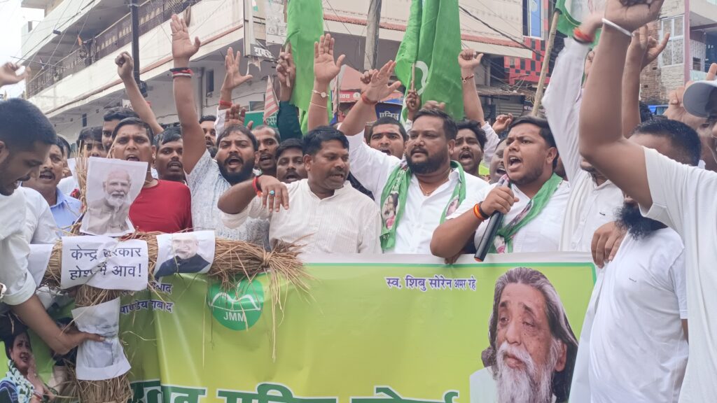 Chatra : झामुमो जिला अध्यक्ष निलेश ग्याशेन के नेतृत्व में केंद्र सरकार की दमनकारी नीति और काला कानून के खिलाफ झामुमो कार्यकर्ताओं ने चतरा जिला मुख्यालय में केंद्र सरकार का पुतला दहन कर विरोध किया। कार्यक्रम के दौरान कार्यकर्ताओं ने केंद्र सरकार के खिलाफ जमकर नारे लगाए। पत्रकारों से बात करते हुए जिला अध्यक्ष निलेश ग्याशेन ने कहा कि केंद्र सरकार ने काला बिल और काला कानून लाया है। इन्हीं गलत नीतियों के विरोध में पूरे झारखंड में पार्टी द्वारा पुतला दहन कर सांकेतिक संदेश दिया जा रहा है। कहा कि पूरी दुनिया जानती है कि किस तरह से केंद्र की भाजपा सरकार अपने प्रतिद्वंदियों को रोकने के लिए केंद्रीय एजेंसियों का दुरूपयोग कर रही है।कहा कि देश में लोकतांत्रिक व्यवस्था है। लेकिन केंद्र सरकार ने देश के संविधान से छेड़छाड़ कर काला कानून लाने का काम कर रही है। केंद्र की इन दमनकारी नीतियों के खिलाफ झामुमो विरोध दर्ज करवा रही है। जिलाध्यक्ष ने कहा कि सरकार देश में विकास का कार्य करे न कि दमनकारी कानून के माध्यम से द्वेष पैदा करे। पत्रकारों द्वारा पूछे गए एक सवाल का जवाब देते हुए जिलाध्यक्ष ने कहा कि सांकेतिक विरोध के बाद भी काला कानून वापस नहीं लिया जाता है तो चरणबद्ध आंदोलन चलाया जाएगा। इस कार्यक्रम में जिला अध्यक्ष निलेश ग्याशेन जिला सचिव चन्द्रदेव साव जिला कोषाध्यक्ष नितिन अंबानी राणा युवा मोर्चा जिला अध्यक्ष राहुल यादव छात्रसंघ अध्यक्ष रुपेश यादव चतरा सदर प्रखंड अध्यक्ष उपेंद्र राम सैकड़ो की संख्या में जेएमएम के कार्यकर्ता उपस्थित रहे