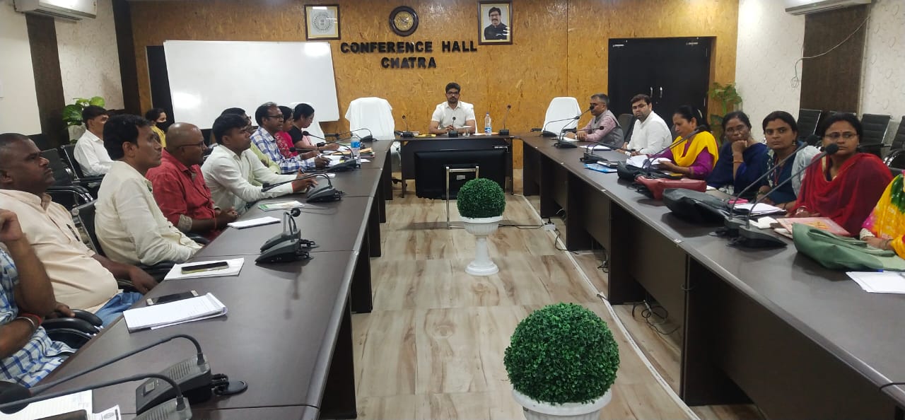 चतरा समाहरणालय स्थित सभा कक्ष में उपायुक्त श्री अबु इमरान की अध्यक्षता में जे०एस०एल०पी०एस०, चतरा द्वारा संचालित सभी परियोजनाओं की समीक्षा बैठक की गई।समीक्षा के दौरान जिला कार्यक्रम प्रबंधक जे०एस०एल०पी०एस० द्वारा बताया गया कि SHG(स्वयं सहायता समूहों) में प्रधानमंत्री आवास योजना से आच्छादित परिवारों को जोड़ने का कार्य किया जा रहा है जिसके तहत 80 प्रतिशत कार्य पूर्ण कर लिया गया है। उन्होंने बताया कि कि स्वयं सहायता समूहों के सदस्यों के आधार एवं बैंक खाता अद्यतन हेतु शत प्रतिशत लक्ष्य प्राप्त करने का कार्य प्रगति पर है तथा तत्काल में राज्य स्तर पर जिला द्वतीय स्थान पर स्थापित है।बैठक में उपायुक्त महोदय द्वारा सोशल मोबिलाइजेशन कार्य एवं स्वयं सहायता समूहों में बचे हुए परिवारों को समूह में जोड़ने के अंतर्गत किये गए कार्यों की जानकारी लेते हुए हेतु जिला कार्यक्रम प्रबंधक जे०एस०एल०पी०एस० को निर्देशित किया कि तय समय सीमा के अन्दर कार्य पूर्ण किया जाए।अमृत महोत्सव के उपलक्ष्य में दिये गये कार्यों जैसे वित्तीय समावेशन हेतु विशेष कैम्प, खता खोलने एवं समस्त समूहों का बिमा पूर्ण करने का निर्देश दिया। उन्होंने पशुपालन विभाग को सहयोग करते हुए बड़े जानवरों में टीकाकरण के लक्ष्य को JSLPS की पशु सखी की मदद से पूर्ण करने का निर्देश दिया गया। बिरसा हरित ग्राम योजना दीदी बाड़ी योजना / दीदी बगिया योजना / फूलो-झानों योजना के सफल कियान्वयन हेतु प्रखण्ड विकास पदाधिकारी एवं JSLPS चतरा के बीच समन्वय स्थापित कर कार्य को पूर्ण करने का निर्देश दिया गया साथ ही साथ बागवानी सखी / दीदी बाड़ी को ससमय मानदेय भुगतान करने का निर्देश दिया गया।DDUGKY (दीनदयाल उपाध्याय-ग्रामीण कौशल्य योजना) के अंतर्गत युवक-युवतियों को प्रशिक्षण में भेजने से पहले उम्र की पूर्णतः जाँच कर एवं परिवार से सहमती पत्र प्राप्त कर ही भेजने का निर्देश दिया गया। RSETI से प्रशिक्षण प्राप्त कर लाभुकों को व्यक्तिगत स्वरोजगार चलाने हेतु बैंकों से ऋण मुहैया कराने का भी निर्देश दिया गया।समर अभियान के तहत किये गए कार्यों की जानकारी लेते हुए उपायुक्त ने निर्देश दिया कि SAM एवं अंडर वेट बच्चों को प्रतिदिन लगातार तीन महीनों तक फूड बास्केट निरंतर दिया जाए जिससे बच्चों के सम्पूर्ण विकास में सहयोग मिल सके। इसके तहत उन्होंने जिला समाज कल्याण पदाधिकारी एवं जिला कार्यक्रम प्रबंधक -JSLPS को किसी भी तरह की लापरवाही नहीं बरतने का निर्देश दिया गया साथ ही सभी SAM/SUW बच्चे को प्रतेक दिन फूड बास्केट उपलब्ध कराने का निर्देश दिया। जिला समाज कल्याण पदाधिकारी से SAM/SUW बच्चों की वर्तमान स्थिति की सूचि JSLPS को उपलब्ध कराने की बात कहते हुए शत प्रतिशत SAM/SUW बच्चो को फूड बास्