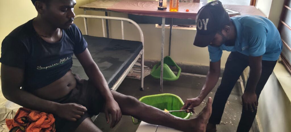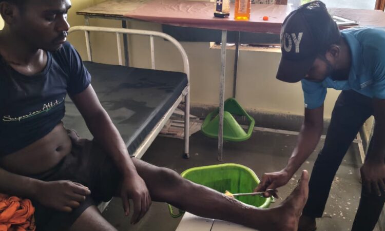 लावालौंग: इन दिनों लावालौंग प्राथमिक स्वास्थ्य केंद्र मीडिया और सोशल मीडिया के सुर्खियों में है। इसके बावजूद भी वरीय पदाधिकारियों और उपायुक्त के अनदेखी के कारण यहां के पदाधिकारी और कर्मी अपनी सीमा की हद पार कर चुके हैं।आलम यह है कि सोमवार को मारपीट की घटना में सिलदाग पंचायत के जोभी गांव निवासी नरेश गंझू बुरी तरह घायल हो गया था। उसके हाथ पैर और माथे पर गहरी चोट लगने के कारण मांस और चमड़ा फट गया था। घायल की स्थिति में परिजनों ने इलाज के लिए नरेश को प्राथमिक स्वास्थ्य केंद्र लावालौंग में भर्ती कराया। परंतु यहां ना ही किसी एएनएम/ एन०एम० या किसी डॉक्टर ने उसका इलाज किया और ना ही देखने तक आए। जबकि डॉक्टर प्रभात किरण हॉस्पिटल आवास में ही उपस्थित थे। कुछ ही देर में सफाई कर्मी प्रेम भारती अपने हाथों में इलाज का सामान लेकर आता है, और घायल नरेश के जख्मों को जैसे तैसे ड्रेसिंग करना शुरू कर देता है। नरेश ने बताया कि मैं दर्द से तड़पता रहा परंतु किसी ने भी मेरी स्थिति को समझने की कोशिश तक नहीं किया। नरेश के भाई ने बताया कि लापरवाही देखकर हम स्वास्थ्य केंद्र से नरेश को निकालकर निजी क्लीनिक में इलाज करवाया। हालांकि इलाज के बाद यहां से भी बेहतर इलाज के लिए चतरा रेफर कर दिया गया।डॉक्टर प्रभात किरण से पूछे जाने पर उन्होंनें बताया कि उस समय मैं खाना बना रहा था। जिसके कारण सफाई कर्मी को सिर्फ जख्म साफ करने के लिए बोला था। बाकी मरीज का इलाज मैंने ही किया है। जबकि परिजनों और मरीज का आरोप है कि सफाई कर्मी के अलावा किसी का दर्शन तक नहीं हुआ है।