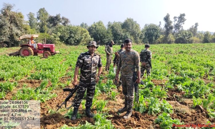 Chatra : लावालौंग पुलिस ने गुरुवार को अफीम/ पोस्ता की खेती को विनष्टीकरण अभियान चलाकर अनुमंडल पुलिस पदाधिकारी के नेतृत्व में किया। थाना क्षेत्र के रिमी पंचायत अंतर्गत कुकुरमारवा गांव की वन भूमि पर लगे 14 एकड़ में लहलहाते अफीम पोस्ता की खेती को ट्रैक्टर चलाकर विनष्टीकरण किया है, वहीं जानकारी के अनुसार थाना प्रभारी रुपेश कुमार ने बताया कि रिमी पंचायत अंतर्गत कुकुरमार्वा गांव की बीहड़ जंगलो में वन भूमि पर 14 एकड़ में लगे अफीम पोस्ता की खेती ट्रैक्टर चलाकर विनष्टीकरण किया गया है। तथा अफीम पोस्ता की खेती करने वाले लोगों को सत्यापन कर एनडीपीएस एक्ट के तहत मुकदमे दर्ज की जा रही है। उन्होंने आगे यह भी कहा कि लोग पोस्ता की जगह दूसरे फसल करके जीवन यापन कर सकते हैं , यह अवैध और ज़हरीली खेती है यह खेती मानव जीवन में भी प्रभावित करता है अभियान के दौरान पुलिस बल व वन विभाग के लोग शामिल थे।