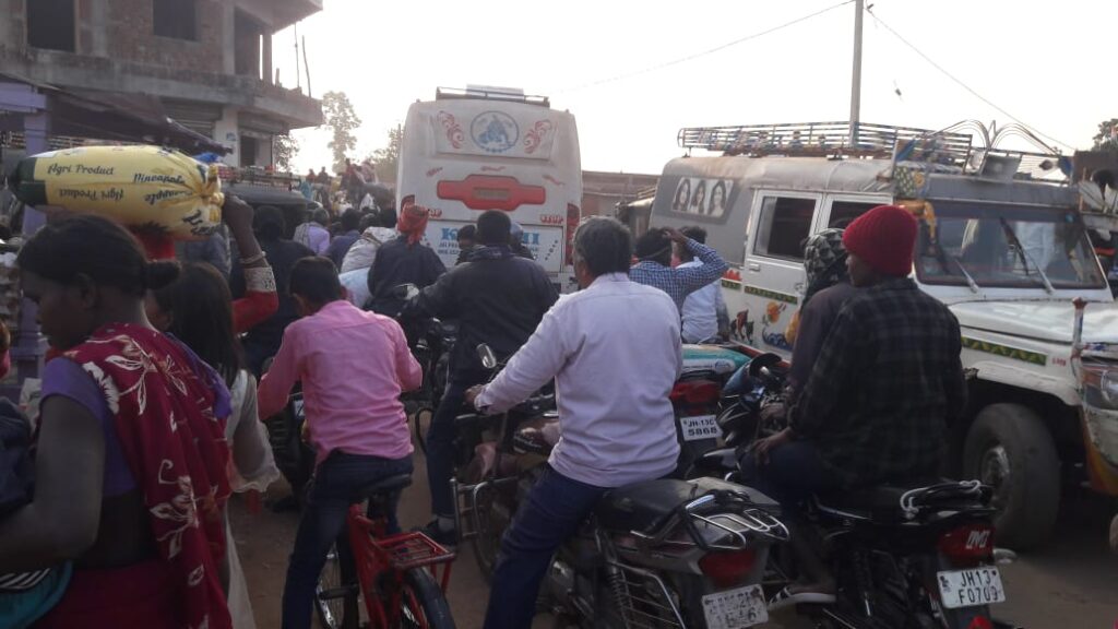 Home » आधे सड़क पर लग रहा बाजार वाहनों एवं ग्रामीणों को घंटों झेलना पड़ रहा है जाम का दंश