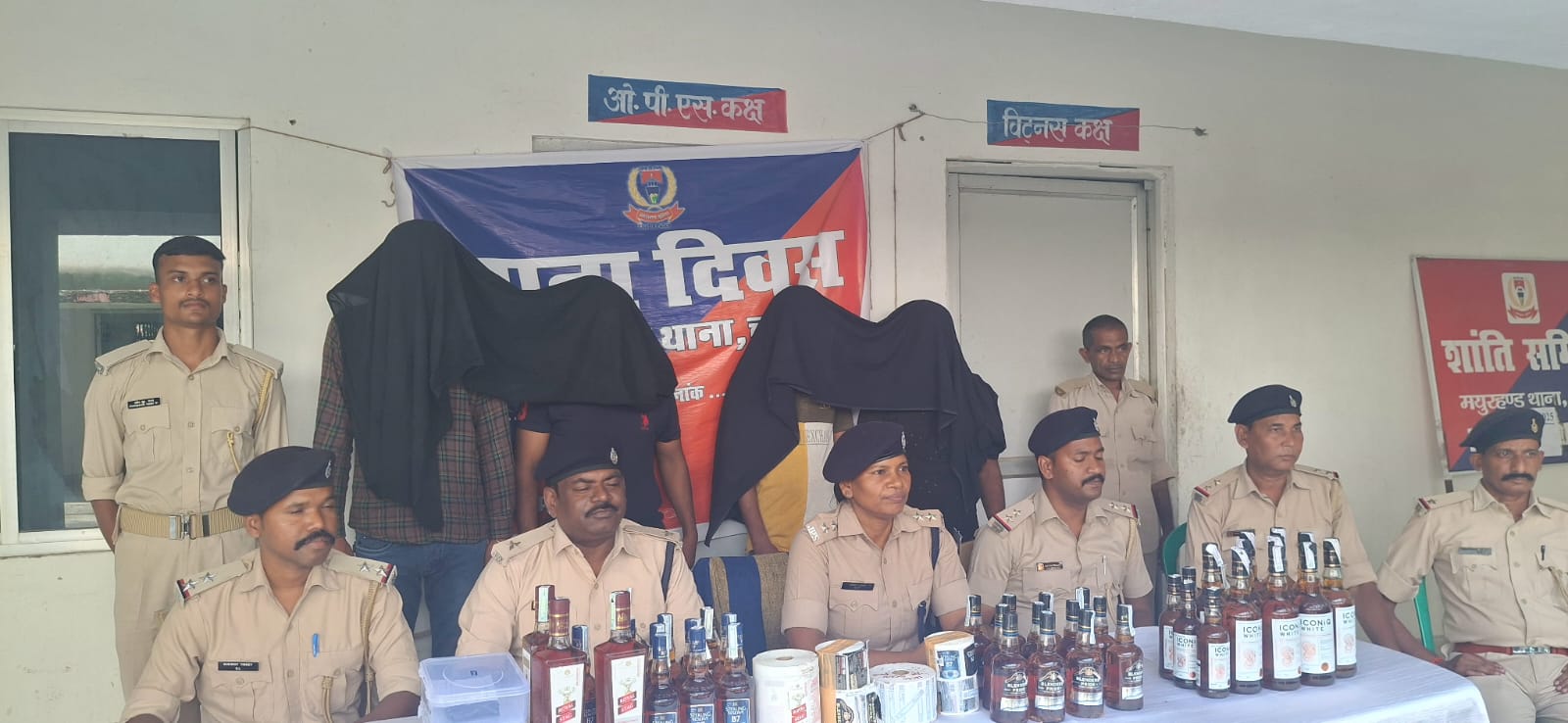 चतरा पुलिस अधीक्षक सुमित अग्रवाल चतरा आगमन के बाद से ही एक्शन मूड में नजर आ रहे हैं लगातार नसे के कारोबारी के खिलाफ कार्रवाई कर रहे हैं पुलिस अधीक्षक को मिली गुप्त सूचना के आधार पर मयूरहण्ट पुलिस ने नकली शराब कारोबारी के खिलाफ बड़ी कार्रवाई करते हुए अवैध नकली शराब के एक बड़े रैकेट का भंडाफोड़ किया है। पुलिस उपाधीक्षक अमिता लकड़ा ने मयूरहण्ट थाना मे प्रेस वार्ता कर बताया पुलिस अधीक्षक को लगातार सूचना मिल रही थी के चतरा जिला के हजारीबाग सीमावर्ती क्षेत्र मयूरहण्ट थाना अंतर्गत अवैध नकली शराब निर्माण किया जा रहा है और उसे बिहार-झारखंड सीमा पर हंटरगंज में शराब भेजा जाता है इसी के आलोक में छापेमारी टीम का गठन किया गया छापेमारी टीम द्वारा पदमा इटखोरी रोड में नाकेबंदी कर दो वाहनों से नकली शराब बरामद की गई। पुलिस ने मौके से आशीष दांगी और बलवंत दांगी को गिरफ्तार किया। उनकी निशानदेही पर, इस रैकेट में शामिल रॉकी यादव और रामाशीष यादव को भी गिरफ्तार किया गया। पुलिस ने आरोपियों के विभिन्न ठिकानों से भारी मात्रा में नकली शराब, खाली बोतलें, स्टिकर और परिवहन में इस्तेमाल होने वाले वाहन जब्त किए हैं। यह माना जा रहा है कि इस शराब का इस्तेमाल बिहार के आगामी विधानसभा चुनाव में किया जाना था। पुलिस फरार आरोपियों की तलाश कर रही है। इस संबंध में मयूरहंड थाना कांड संख्या 43/25 धरा 271,274,61(2)318(4)338,