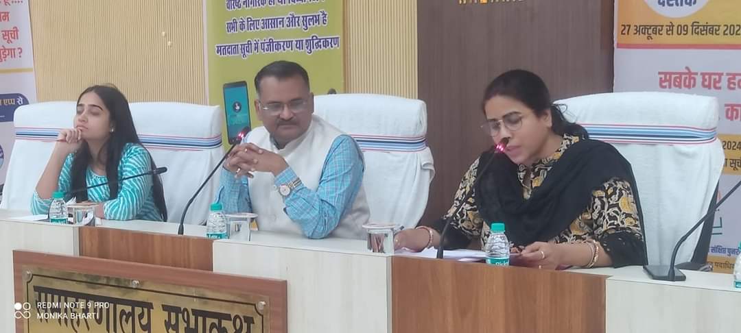 चतरा : समाहरणालय सभाकक्ष में मतदाता सूची विशेष संक्षिप्त पुनरीक्षण कार्यक्रम 2024 के निमित्त सभी राजनीतिक दलों के प्रतिनिधियों के साथ जिला निर्वाचन पदाधिकारी, हजारीबाग की अध्यक्षता में एक बैठक का आयोजन किया गया। बैठक में पुनरीक्षण कार्यक्रम के तहत मतदाता सूची के प्रारूप प्रकाशन,दावा एवं आपत्ति प्राप्त करने एवं उसका निष्पादन तथा मतदाता सूची का अन्तिम प्रकाशन हेतु आयोग द्वारा निर्धारित तिथियों के संदर्भ में विस्तार से जानकारी दी गई जिसके तहत दिनांक 27.10.2023 को प्रारूप मतदाता सूची का प्रकाशन किया जाएगा मतदाता सूची में नाम शामिल करने, नाग विलोपन एवं त्रुटि में सुधार हेतु दिनांक 27-102023 से 09.12.2023 तक दावा एवं आपत्ति प्राप्त करने हेतु तिथि निर्धारित है। प्राप्त दावा एवं आपत्ति का निष्पादन हेतु दिनांक 26.12.2023 की अन्तिम तिथि निर्धारित है। दिनांक 05.01.2024 को मतदाता सूची का अन्तिम प्रकाशन किया जाएगा। दिनांक 28.10.2023, 29.10.2023 एवं 04.11.2023 तथा 05.11.2023 को विशेष अभियान की तिथि निर्धारित है। छूटे हुए मतदाताओं को विशेषकर Transgender, Particularly Vulnerable Tribal Groups (PVTGs), Sex Workers, 80+ आयु वर्ग, दिव्यांगजन Homless People, आश्रय गृहों में निवास करने वाले सभी पात्र नागरिकों को मतदाता सूची में शत-प्रतिशत निबंधन सुनिश्चित करने के उद्देश्य से दिनांक 28.11.2023 से 03.12.2023 तक समावेशी सप्ताह (Inclusive Week) का आयोजन करने हेतु तिथि निर्धारित है। दिनांक 27.10.2023 को प्रारूप मतदाता सूची के प्रकाशन की तिथि को मतदान केन्द्र स्तर पर विशेष कार्यक्रम आयोजित किया जाना है, जिसके तहत उक्त तिथि को पूर्वाहन 11.00 बजे से मध्याहन 12.00 बजे के मध्य सभी पदाधिकारियों, कर्मियों, सभी जन प्रतिनिधियों एवं आम जनों के द्वारा अपने-अपने मतदान केन्द्र पर जाकर वहाँ उपस्थित बी०एल०ओ० के साथ Selfie / Photo लेकर अपने सभी *Social Media Handies* पर *#ProudOfMyBLO* के साथ *Post* करते हुए मुख्य निर्वाचन पदाधिकारी, झारखण्ड के विभिन्न *Social Media Handies* में Mention/Tag करने हेतु अपील की गई। बैठक में जिला निर्वाचन पदाधिकारी, हजारीबाग, उप निर्वाचन पदाधिकारी, हजारीबाग, सहायक समाहर्त्ता, हजारीबाग, अनुमण्डल पदाधिकारी, सदर, हजारीबाग के साथ-साथ सभी सहायक निर्वाचक निबंधन पदाधिकारी, हजारीबाग एवं राजनीतिक दलों के प्रतिनिधि श्री गणेश कुमार सीटू सी०पी०आई० (मा० ). श्री विकाश राणा, आजसू श्री हिरामन यादव, राजद, [झा०सु०म० इंडियन नेशनल कांग्रेस एवं बहुजन समाज पार्टी के प्रतिनिधि उपस्थित थे।