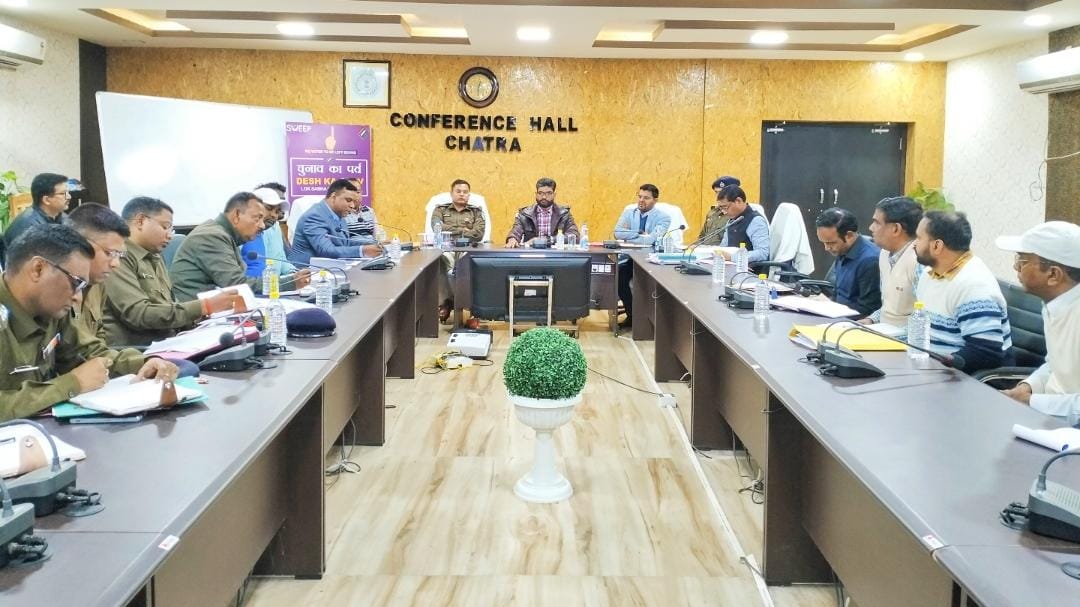 निर्वाचन से संबंधित गठित कोषांग के नोडल पदाधिकारी/ सहायतार्थ पदाधिकारी/ निर्वाचक निबंधन पदाधिकारी/ सहायक निर्वाचक निबंधन पदाधिकारी/ सभी थाना प्रभारी के साथ निर्वाचन से संबंधित कार्यों की समीक्षा बैठक की गई एवं कई आवश्यक दिशा निर्देश दिए गए। उन्होंने कहा सभी विभाग आपस में समन्वय स्थापित करते हुए निर्वाचन का कार्य करें और आगे कहा मतदाता को जागरूक करने के लिए स्वीप कार्यक्रम के तहत अभियान मोड में कार्य करें। उक्त बैठक में पुलिस अधीक्षक श्री राकेश रंजन, वन प्रमंडल पदाधिकारी उत्तरी राहुल मीना, अपर समाहर्ता पवन कुमार मंडल, डीआरडीए निदेशक अरुण कुमार एक्का, जिला खनन पदाधिकारी गोपाल दास, खान निरीक्षक राजेश हशदा, अनुमंडल पुलिस पदाधिकारी चतरा, अनुमंडल पुलिस पदाधिकारी सिमरिया, सभी प्रखंड विकास पदाधिकारी, सभी थाना प्रभारी समेत अन्य संबंधित उपस्थित थे।
