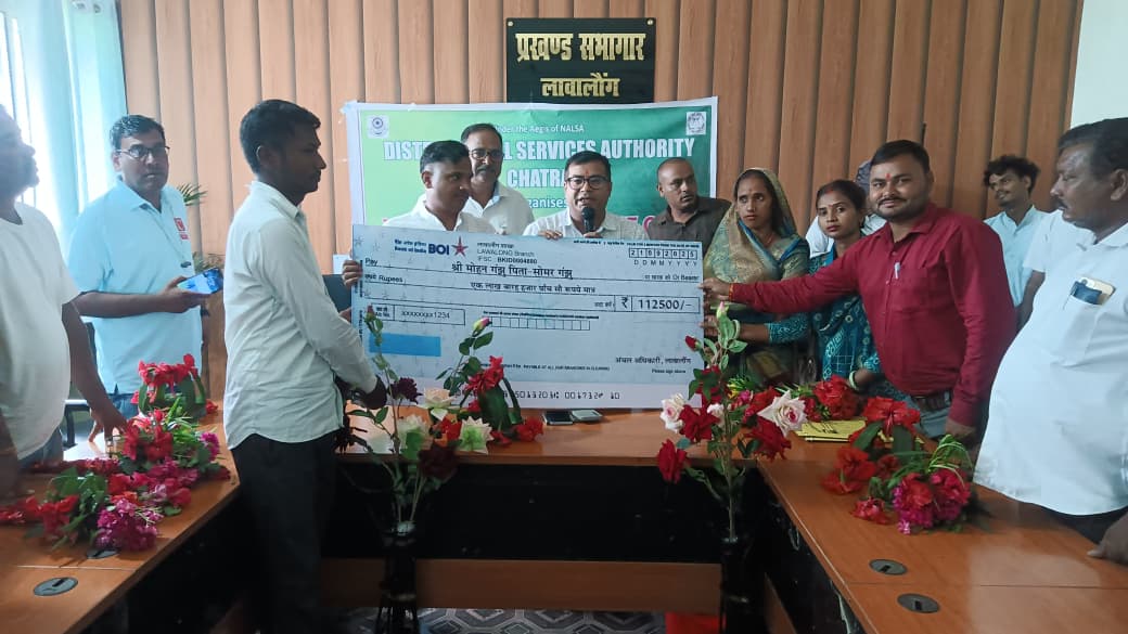 Chatra : लावालौंग प्रखंड सभागार में जिला विधिक सेवा प्राधिकार चतरा की ओर से मेगा विधिक सशक्तिकरण शिविर का आयोजन किया गया। कार्यक्रम का आरंभ न्याय बोर्ड चतरा तथा प्रखंड विकास पदाधिकारी विपिन कुमार भारती ने संयुक्त रूप से दीप प्रज्वलित कर किया।शिविर में मुख्य अतिथि ने लोगों को कानून से संबंधित विभिन्न प्रावधानों की जानकारी दी। उन्होंने कहा कि समाज में प्रचलित कुरीतियाँ जैसे अंधविश्वास,डायन-भूत की अफवाहें, दहेज प्रथा, बाल विवाह,भ्रूण हत्या तथा बालिकाओं के साथ होने वाले अत्याचार आज भी बड़ी सामाजिक समस्याएँ हैं।इन बुराइयों के खिलाफ सभी को जागरूक होकर कानूनी सहायता का उपयोग करना चाहिए। कार्यक्रम के दौरान लाभुकों को 20 लाख रुपये का सांकेतिक चेक वितरित किया गया।साथ ही पेंशन योजनाओं का लाभ,जॉब कार्ड और अन्य जनकल्याणकारी योजनाओं से संबंधित दस्तावेज भी लाभार्थियों को प्रदान किए गए।इस अवसर पर उपस्थित ग्रामीणों ने विधिक सेवा प्राधिकरण के इस कदम का स्वागत करते हुए कहा कि ऐसे शिविर से समाज में सकारात्मक परिवर्तन आएगा।मुख्य अतिथि ने कार्यक्रम के बाद लावालौंग थाना का भी निरीक्षण किया और पुलिस अधिकारियों से विधिक जागरूकता अभियानों को और प्रभावी ढंग से लागू करने पर बल दिया।इस मेगा शिविर ने न केवल लोगों को उनके अधिकारों और कर्तव्यों के प्रति जागरूक किया बल्कि लाभुकों के बीच दो अबूआ आवास समेत कई अन्य सरकारी परिसंपत्तियों का वितरण भी किया गया।शिविर में बीपीएम जेएसएलपीएस रंजय कुमार,मुखिया संघ अध्यक्ष कोलकोले मुखिया राजेश साहू,नेमन भारती जगदीश यादव,संतोष राम,पीएलवी जनेश कुमार यादव,अभिषेक कुमार ठाकुर, रविकांत कुमार,रेखा कुमारी और काजल कुमारी सहित बड़ी संख्या में ग्रामीण मौजूद रहे।