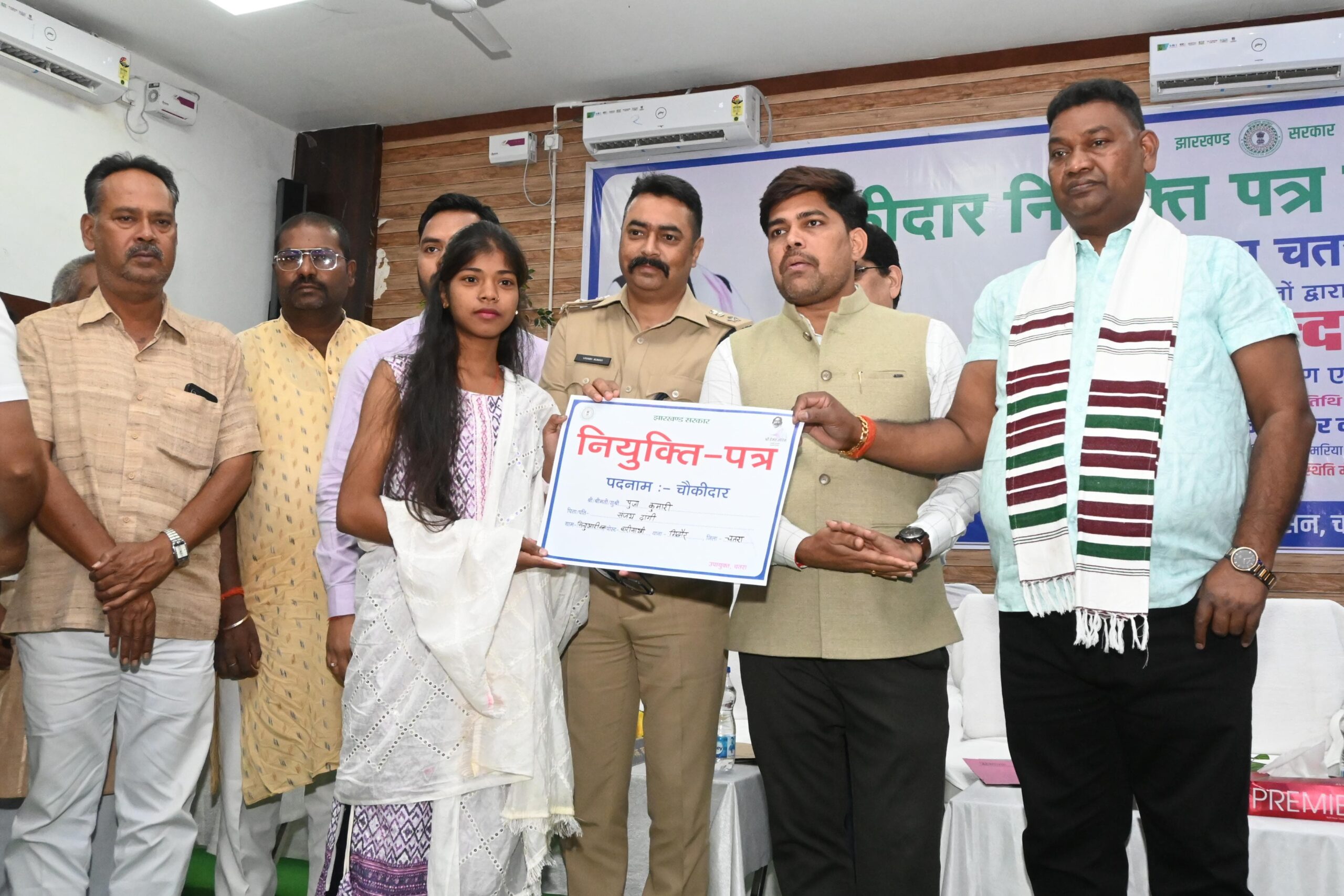 Chatra : चौकीदार नियुक्ति पत्र वितरण कार्यक्रम का आयोजन डीएमएफटी भवन चतरा में किया गया। जिसमे राज्य के मंत्री उद्योग विभाग, श्रम नियोजन प्रशिक्षण एवं कौशल विकास विभाग झारखंड सरकार श्री सत्यानंद भोक्ता बतौर मुख्य अतिथि शामिल हुए। मंत्री के आगमन पर पौधा भेंट कर उनका स्वागत किया गया। तत्पश्चात विधिवत दीप प्रज्वलित कर कार्यक्रम का शुभारंभ किया गया। चतरा जिला में चौकीदार का कुल स्वीकृत पद 373 है, जिसमें पूर्व से कार्यरत पद 221 है। तदनुसार रिक्त पद की संख्या 152 था। 152 रिक्त पद का जिला स्तरीय आरक्षण रोस्टर का अनुमोदन आयुक्त, उत्तरी छोटानागपुर प्रमण्डल, हजारीबाग से कराते हुए विभागीय निदेशानुसार रिक्त पदों पर सीधी नियुक्ति के लिए दिनांक 02.08.2024 को विज्ञापन संख्या 01/2024 निर्गत किया गया।विज्ञापन के आलोक में कुल 7320 आवेदन पत्र प्राप्त हुए।आवेदन पत्रों के प्रथम स्क्रूटनी के क्रम में 3100 आवेदन स्वीकृत किया गया। इस संबंध में 660 दावा/आपत्ति आवेदन पत्र प्राप्त हुआ, जिसके आलोक में 249 आवेदन स्वीकृत किया गया। इस प्रकार कुल 3349 आवेदन स्वीकृत किया गया।3349 अभ्यर्थियों के लिए दिनांक 28.09.2024 को लिखित परीक्षा का आयोजन किया गया। इस हेतु चतरा जिलान्तर्गत 07 परीक्षा केन्द्र का चयन किया गया था।कदाचार मुक्त एवं स्वच्छ वातावरण में लिखित परीक्षा सम्पन्न कराने के लिए प्रत्येक परीक्षा केन्द्र में स्टैटिक मजिस्ट्रेट-सह-ऑब्जर्वर / गश्ती मजिस्ट्रेट / पुलिस पदाधिकारी एवं उड़नदस्ता पदाधिकारी की प्रतिनियुक्ति किया गया था। सभी परीक्षा केन्द्र में सीसीटीवी से निगरानी की व्यवस्था की गयी थी।लिखित परीक्षा के उपरांत जिला स्तरीय पदाधिकारियों के जाँच टीम के माध्यम से प्रश्न-सह-उत्तर पुस्तिका का मूल्यांकन कराया गया। मूल्यांकन कार्य की गोपनीयता बरते जाने के लिए मूल्यांकन स्थल में सीसीटीवी की व्यवस्था की गयी थी। लिखित परीक्षा के आधार पर कुल 550 अभ्यर्थियों को शारीरिक जाँच (दौड़) के लिए चयनित किया गया, जिसमें अनारक्षित कोटि में 392, आर्थिक रूप से कमजोर वर्ग (EWS) कोटि में 48, अत्यन्त पिछड़ा वर्ग कोटि में 69 तथा पिछड़ा वर्ग कोटि में 41 अभ्यर्थी थे।दिनांक 08.10.2024 को आयोजित दौड़ में कुल 172 अभ्यर्थी सफल हुए, जिसमें से कुल 151 अभ्यर्थी का अंतिम मेधा सूची तैयार किया गया। मेधा सूची के अनुसार अनारक्षित कोटि में 108, आर्थिक रूप से कमजोर वर्ग (EWS) कोटि में 15, अत्यन्त पिछड़ा वर्ग कोटि में 22 तथा पिछड़ा वर्ग कोटि में 07 अभ्यर्थी का चयन चौकीदार के पद के लिए किया गया। कुल चौकीदार पद के लिए चयनित 151 अभ्यर्थियों के बीच नियुक्ति पत्र का वितरण किया गया। मंत्री ने अपने संबोधन में कहा राज्य सरकार द्वारा 200 यूनिट बिजली माफ करने का कार्य किया गया। आवासहीन को अबुआ आवास योजना से ल