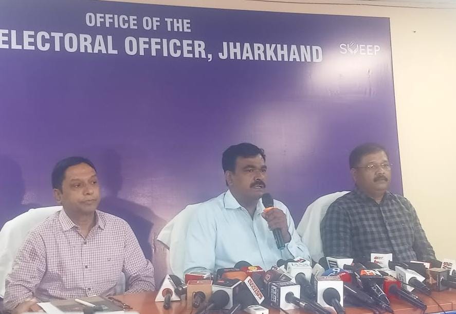 रांची। मुख्य निर्वाचन पदाधिकारी श्री के. रवि कुमार ने कहा है कि झारखंड सरकार द्वारा 45 विधानसभा क्षेत्र में हुए रिक्ति के लिए जारी अधिसूचना के 6 महीने के भीतर भारत निर्वाचन आयोग द्वारा उक्त विधानसभा क्षेत्र में उप चुनाव कराया जाना है। उक्त आलोक में घाटशिला विधानसभा क्षेत्र के सभी मतदान केंद्रों, एईआरओ, ईआरओ, डीईओ के कार्यालय में मतदाता सूची के प्रारूप का प्रकाशन किया गया है साथ ही संबंधित मान्यता प्राप्त राजनीतिक दलों को इसकी एक हार्ड कॉपी एवं सॉफ्ट कॉपी (pdf) दी गई है। श्री के. रवि कुमार मंगलवार को निर्वाचन सदन में 45 विधानसभा क्षेत्र के मतदाता सूची के प्रारूप प्रकाशन के अवसर मीडिया के प्रतिनिधियों को संबोधित कर रहे थे।