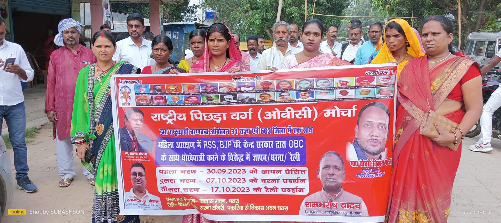 चतरा : राष्ट्रीय पिछड़ा वर्ग मोर्चा के द्वारा महीला आरक्षण को लेकर रैली प्रदर्शन किया गया, रैली का संचालन राष्टीय पिछड़ा वर्ग मोर्चा के जिला अध्यक्ष श्यामदेव मेहता ने किया, मोर्चा के लोगो ने चतरा कॉलेज मैदान में इकट्ठा होकर रैली निकाली रैली डीसी आवास होते हुवे समरहनालय के पास पहुंच कर सभा में तब्दील हो गई, रैली में बड़ी संख्या में महिला व पुरुष सामिल थे,इस दौरान लोगो ने जिसकी जितनी संख्या भारी उसकी उतनी हिसेदारी, नारी शक्ति वंदन एक धोखा है, ओबीसी महिलाओं को संख्या के अनुपात में हिसेदारी देना होगी आदि नारे लगाए, सामर्णहालय के पास पहुंचने के बाद वक्ताओं ने लोगो को संबोधित किया, तत्पश्चात चार सूत्री मांगों को लेकर राष्ट्रपति के नाम उपायुक्त को ज्ञापन सौंपा, राष्टीय मुलनीवासी महिला संघ के कार्यकारी प्रदेश अध्यक्ष पूनम यादव ने कहा की वर्तमान आरएसएस व भाजपा की सरकार ने महिला आरक्षण के नाम पर नारी वंदन अधिनियम ला कर ओबीसी महिलाओं को लोक सभा व विधान सभा में जाने रोकने का संयंत्र है, ओबीसी महिलाओं को आरक्षण से वंचित किया गया, इसके अलाव एससी व एसटी महिलाओं को भी पूर्व से आरक्षित सीटों पर ही आरक्षण दिया गया है, जो गलत है हम केंद्र सरकार एससी,एसटी, ओबीसी व मैनोरिटि के महिलाओं के लिए अलग से सेपरेट इलेक्ट्रोड की मांग करते है, जिससे वंचित समाज को महिलाएं भी लोक सभा व विधान सभा में अपने समाज के महिलाओं की आवाज उठा सके, पिछड़ा वर्ग मोर्चा के संयोजक केदार दांगी ने कहा की महिला बिल में sc,st, OBC महिलाओं के लिए कुछ विशेष नहीं है, खास कर ओबीसी महिलाओं को पूर्ण रुप से प्रतिनिधित्व से वंचित कर दिया गया है, किसान मोर्चा के जिला अध्यक्षा रामभरोस यादव ने कहा की ओबीसी महिलाओं को आरक्षण नहीं दिया गाय हैं, महिला आरक्षण का झांसा देकर ओबीसी वर्ग के एक बड़े वर्ग के महिलाओं को विधान सभा और लोक सभा में जाने से रोकने का प्रयाश किया गया है, इसे लेकर राष्ट्रीय पिछड़ा वर्ग मोर्चा के राष्ट्रीय अध्यक्ष चौधरी विकाश पटेल ने तीन चरणो अंदोलन का घोषणा किए थे, जिसका आज अन्तिम चारण है, अगर सरकार अब भी नही हमारी मांगों पर विचार करती है तो भविष्य में बड़ा आंदोलन किया जाएगा, इस अंदोलन में बहुजन क्रांति मोर्चा, राष्टीय आदिवासी एकता परिषद, राष्ट्रीय किसान मोर्चा, भारती विद्यार्थी मोर्चा, राष्ट्रीय मुलनीवासी महिला संघ के सदस्य भी सामिल हुवे, मौके पर मुख्या आंचला कुमारी, मुखिया सोनिया देवी, रेशमी देवी, मालती उरांव, सबिता देवी, सुमंति बांडो, रीना देवी, चमेली देवी, संगीता देवी, सुनीता देवी,धनेश्वर यादव, दिनेश दांगी, अशोक दांगी, रामेश्वर यादव, चंद्रमोहन पासवान, इंद्रदेव ठाकुर,शुबाश कुमार, केशवर प्रसाद दांगी, चिंता देवी, मनोज यादव, चंद्रद
