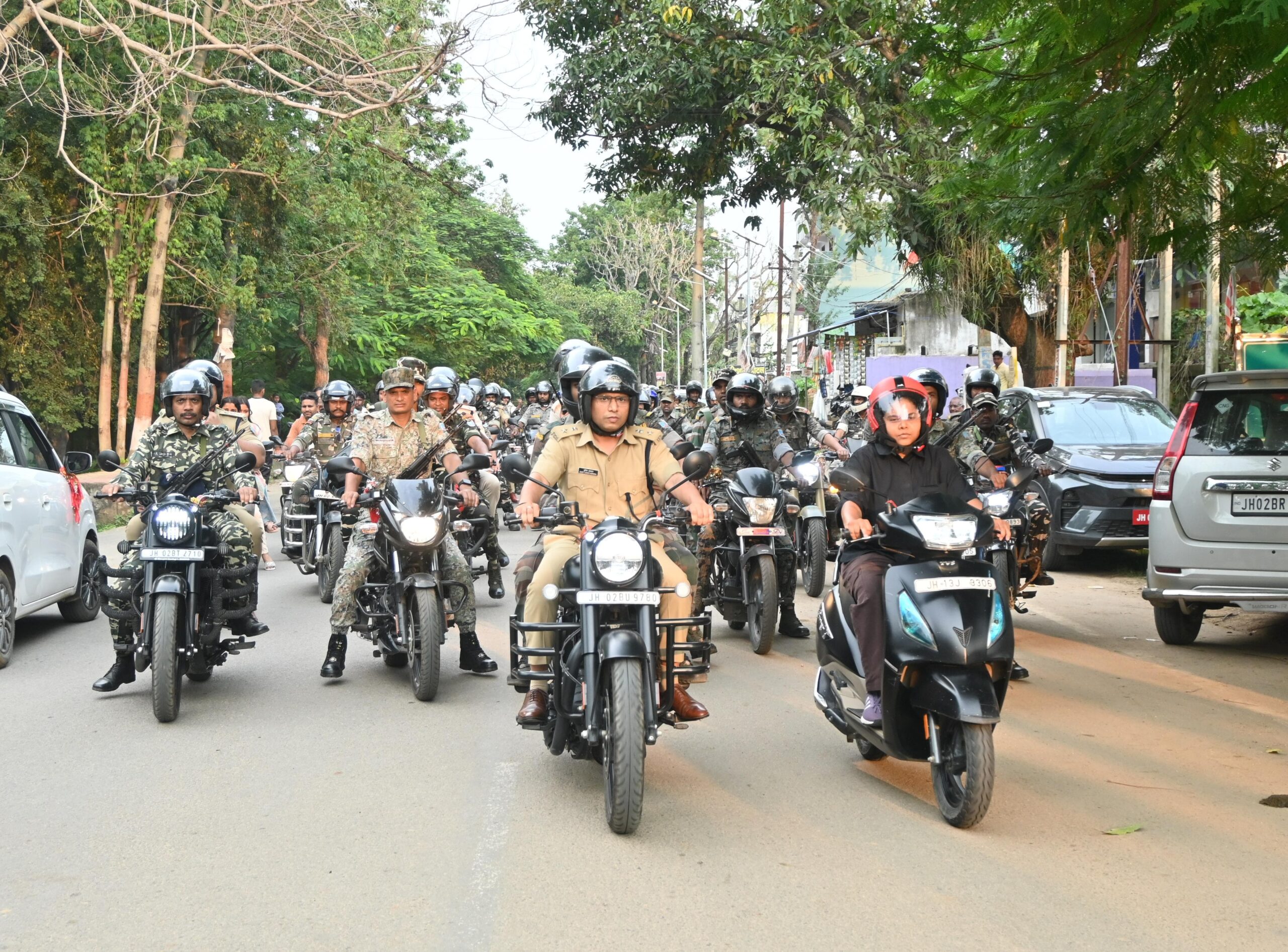चतरा उपयुक्त कृतिश्री जी एवं पुलिस अधीक्षक सुमित कुमार अग्रवाल के द्वारा दुर्गापूजा शांतिपूर्ण एवं सौहार्दपूर्ण वातावरण में संपन्न कराने तथा सफल विधि-व्यवस्था संधारण के लिए सदर थाना के शहरी क्षेत्र में किया गया बाइक फ्लैग मार्च। जिसमें बताया गया कि चतरा जिला में दुर्गापूजा को शांतिपूर्ण एवं सुरक्षित तरीके से संपन्न कराने हेतु जिला प्रशासन पूरी तरह से अलर्ट है। शहर भ्रमण के दौरान कई वरीय पदाधिकारी एवं पुलिस कर्मी मौजूद थे। निरीक्षण के द्वौरान विभिन्न पूजा पंडालों का जायजा लिया तथा दुर्गापूजा समितियों के सदस्यों से बातचित किया व समिति को निर्देश दिया गया कि जिला प्रशासन द्वारा जारी गाईड लाईन को हर हाल में पालन करना सुनिश्चित करें। इस फ्लैग मार्च का उद्देश्य आमजन को सुरक्षा का भरोसा दिलाना तथा असामाजिक तत्वों में कानून-व्यवस्था के प्रति भय उत्पन्न करना था तथा फ्लैग मार्च के दौरान पुलिस अधिकारियों ने आम नागरिकों से अपील किया गया कि पर्व को शांतिपूर्ण एवं आपसी सौहार्द के साथ मनाएँ तथा किसी भी प्रकार की संदिग्ध गतिविधि की सूचना तुरंत पुलिस को दें।