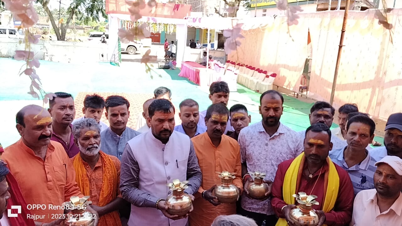 राजपुर में दुर्गा पूजा समिति, राजपुर द्वारा निर्मित दुर्गा पूजा पंडाल में मां दुर्गा की प्रतिमा आवरण हेतु कलश स्थापना पुजन में जिला परिषद उपाध्यक्ष श्री बिरजू तिवारी शामिल हुए.माँ दुर्गा से प्रखंड एवं जिलेवासियों की सुख,समृद्धि और वैभव की कामना की। मौके पर प्रमुख इंदू कुमारी, राजपुर मुखिया विकास कुमार , बकचुम्मा मुखिया पार्वती देवी ,पंचायत समिति सदस्य प्रतिनिधि राजीव सिन्हा, मुखिया प्रतिनिधि बद्री दांगी, भाजपा मंडल अध्यक्ष सतीश सिंह,पूजा समिति अध्यक्ष सुनिल सोनी, सचिव श्रवण रविदास, उपाध्यक्ष गोवर्धन दांगी, कोषाध्यक्ष रविन्द्र कुमार,संतन दांगी,पुखन दांगी, अम्बिका दांगी,रंजन प्रजापति,दिपक प्रजापति,भीम दांगी,राजेश भारती,लोचन दांगी लेखो महतो, अक्ष वर्मा, विद्या सागर समेत सैकड़ों भक्त जन उपस्थित थे।