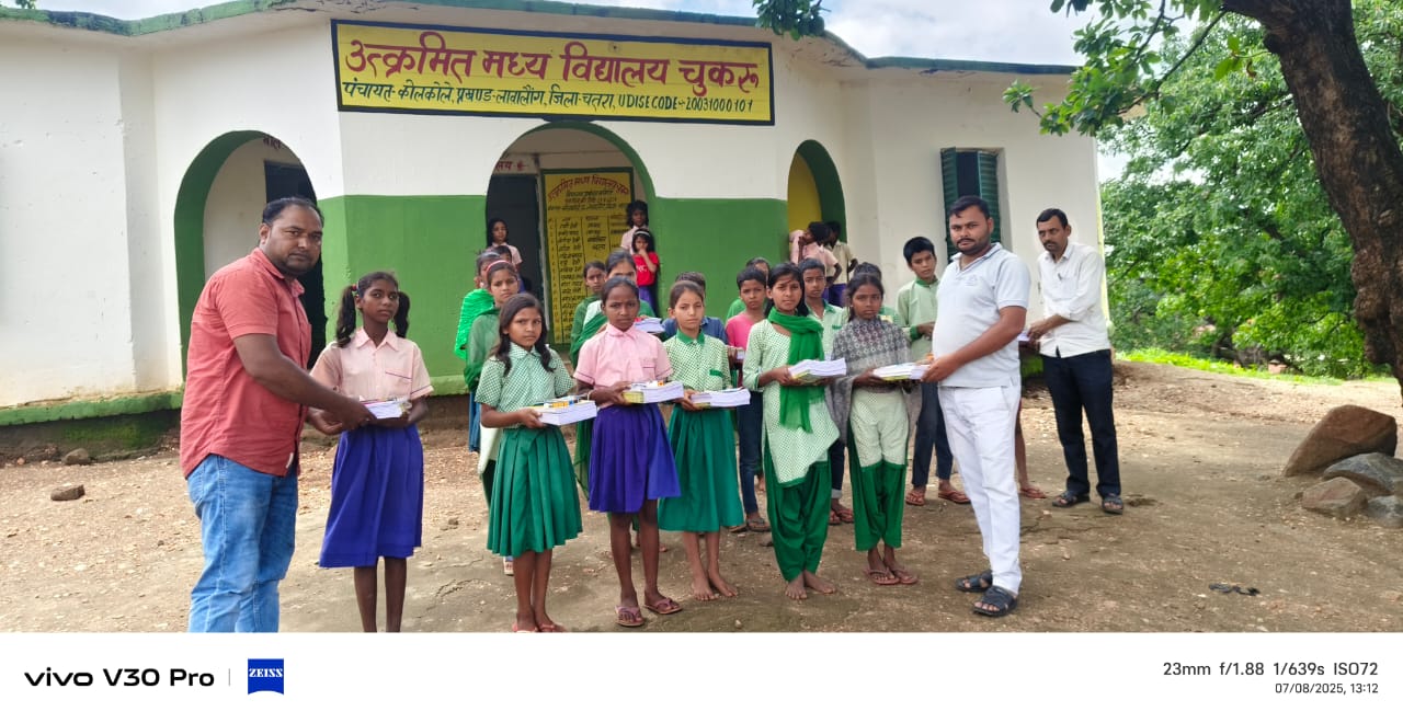 उत्क्रमित मध्य विद्यालय चुकरु में मुखिया के कुशल नेतृत्व में 127 स्कूली बच्चों के बीच किया गया कीट वितरण